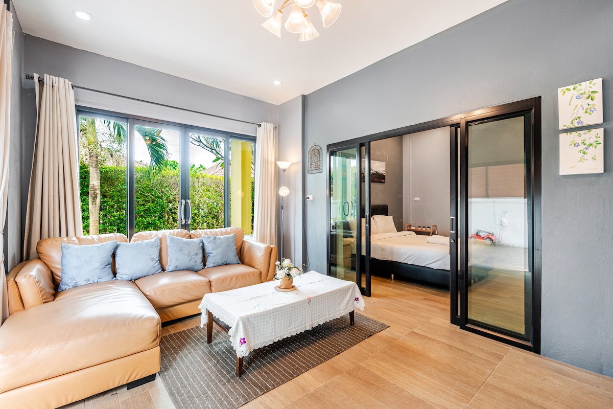 บ้านพักเอาใจครอบครัวและกลุ่มเพื่อน ตั้งอยู่ใจกลางเมืองนครศรีธรรมราช รับรองได้สูงสุดถึง 6 ท่าน เหมาะสำหรับการพาครอบครัวหรือกลุ่มเพื่อนมาพักผ่อน ภายในตกแต่งสวยงามพร้อมสิ่งอำนวยความสะดวก ไม่ว่าจะเป็นโซนครัวสำหรับทานอาหาร รวมถึงโซนห้องนั่งเล่นสำหรับพักผ่อนหย่อนใจ และมีสนามหญ้าให้เด็ก ๆ ได้วิ่งเล่น
