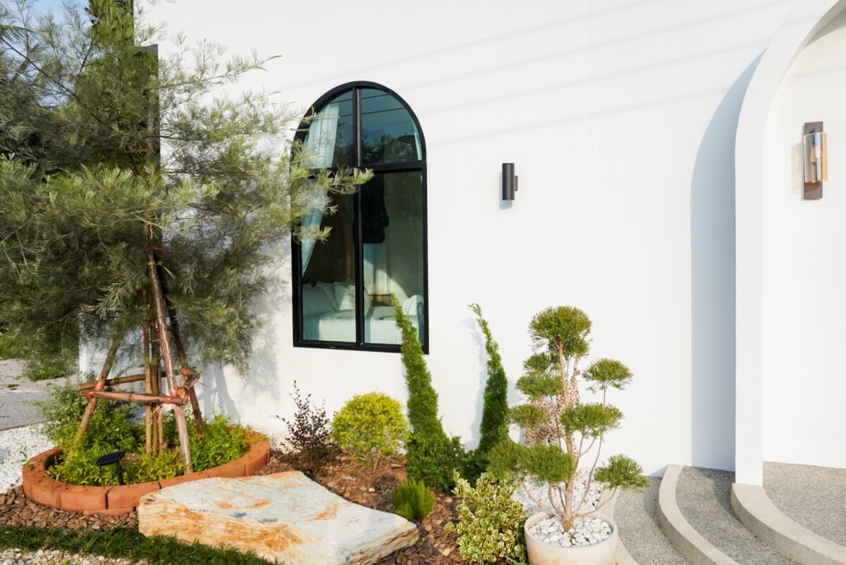 Enjoy a self-service stay in our fully furnished, single-story mews-style home with a separate mezzanine bedroom. The house features a living room with a portable fan, a dressing area, a dining area, a private bathroom, and a bedroom equipped with air conditioning.