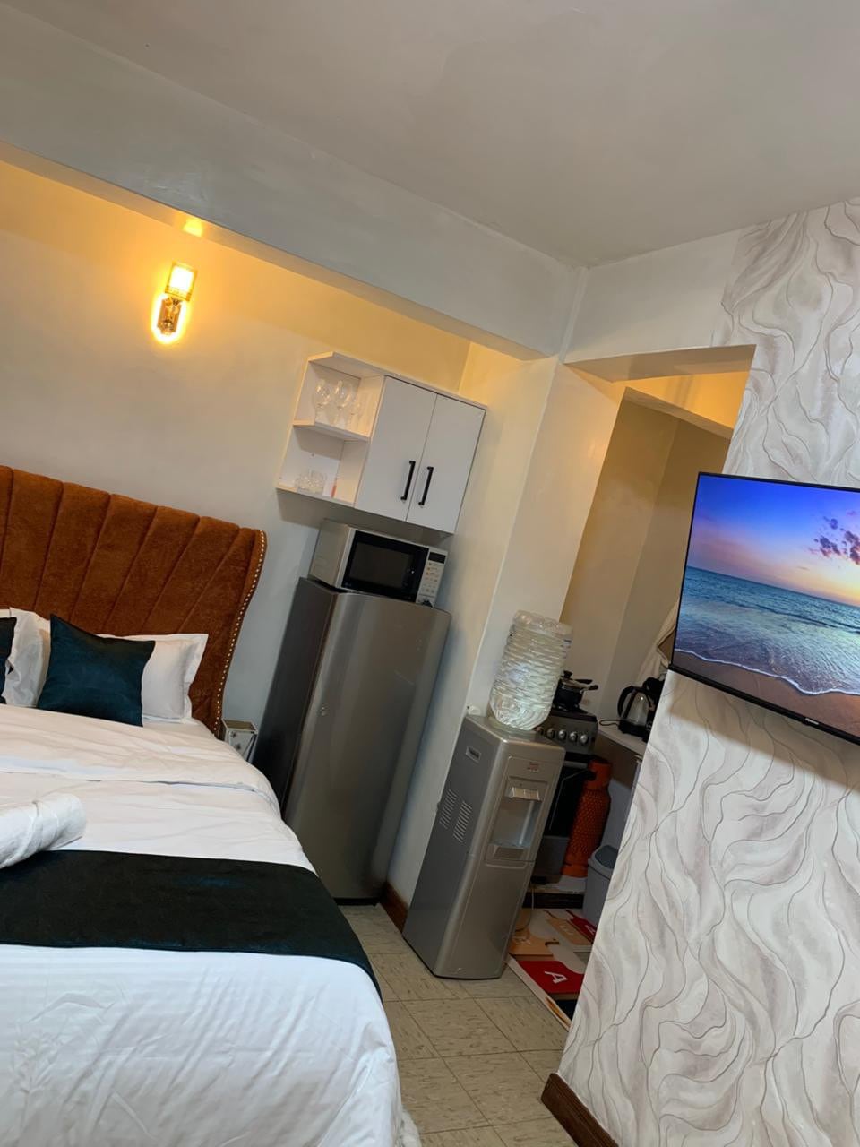 One-bedroom suite featuring a queen-size bed, private living room with Netflix, a fully equipped kitchen, hot shower, fast Wi-Fi, and free on-site parking. Located just 2 km from Nakuru CBD, 1.5 km from Westside Mall, and 3 km from Lake Nakuru National Park, you’ll enjoy easy access to all that Nakuru has to offer! Our friendly building staff are always available to assist whenever you need.