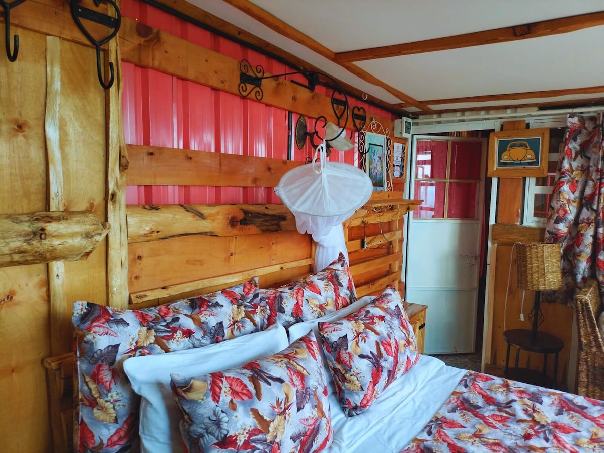 The Romantic Honeymoon Hut is Rustic-Luxury at its finest! A fully furnished cottage with full kitchen and required appliances for self-catering. Sense the quiet stillness and release worry and tension. Gaze at the Malewa river below and the vast skies above from the beautiful verandah looking directly down onto the river.. Enjoy an exquisite experience with a canopy bed with overhead, secret mirror, a jacuzzi tub and intimate fireplace for!