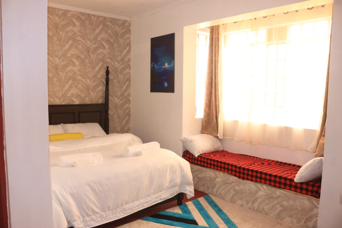 The location is perfect for business travelers who are in Naivasha for a short visit and would like to find a centrally located stay - a 5 minute walk to the Naivasha Central Business District(CBD). Naivasha is well known for the beautiful lake and scenery which are in the vicinity of the area.