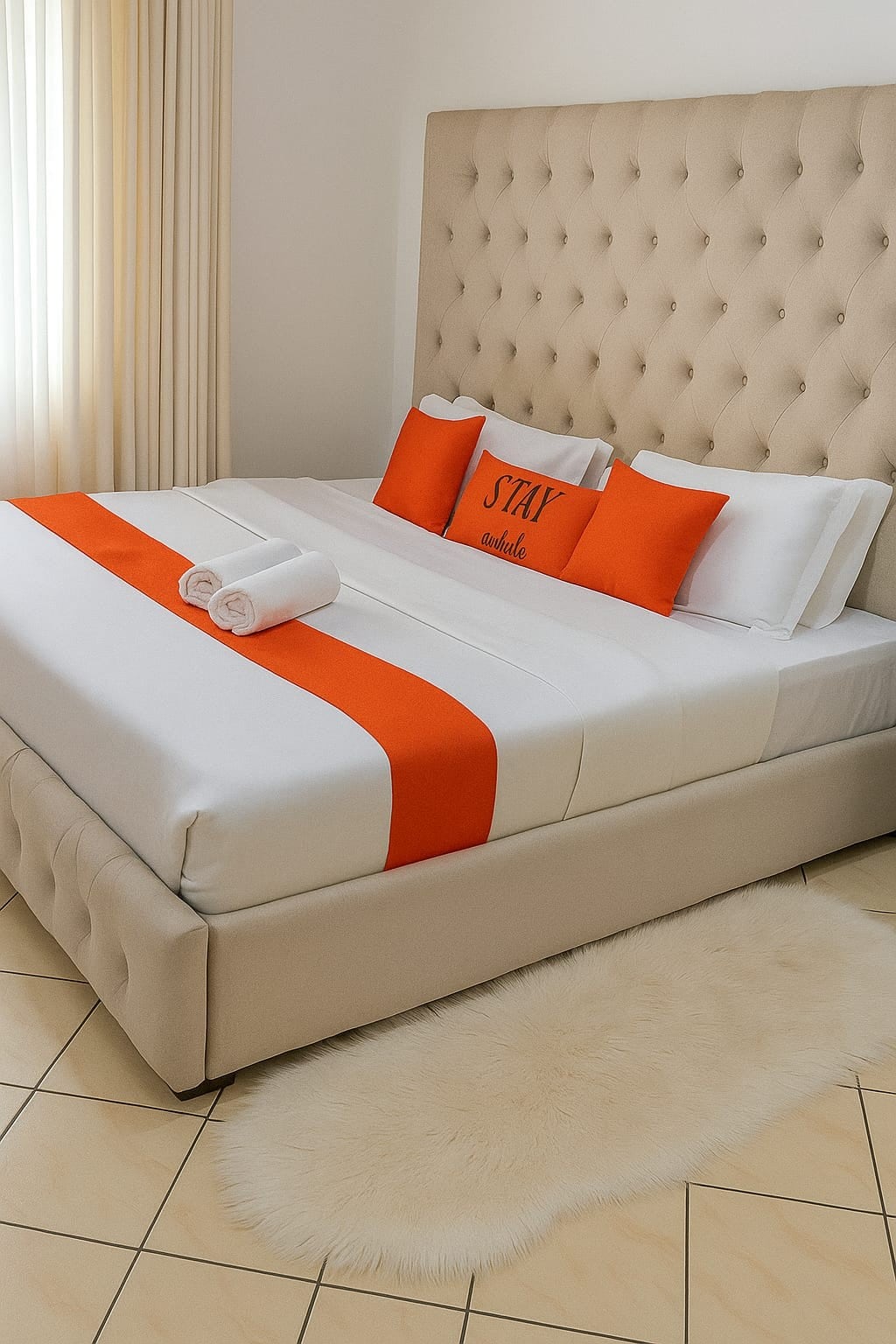 Whether you are looking for a place to stay for a weekend getaway, a week long vacation or longer, relax in this spacious tastefully furnished apartment in the heart of Nakuru CBD at King’s Sapphire apartments. This apartment is in a gated community boasting a 24 hours security, with lots of room for fun and relaxation. It comes with plenty of on-site parking, playground for kids, free Wi-Fi, laundry services at a cost, bathroom essentials, kitchen supplies and TV with streaming services