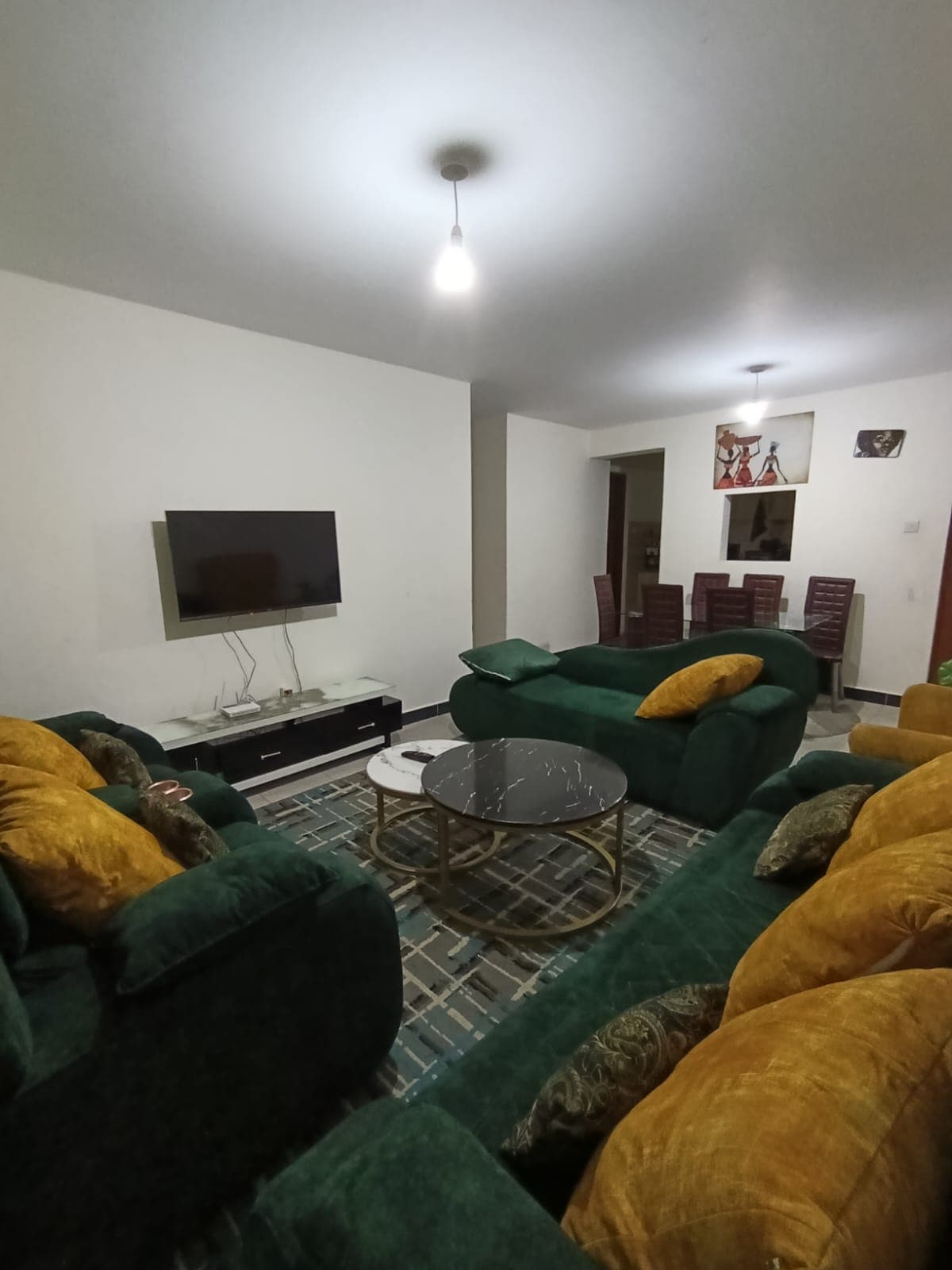 The spacious 3 bedroom apartment is in an excellent neighborhood with ample parking and hosts 6 guests and is open to hosting less than 6 guests at $30 for one room and $50 for two rooms. This will be given as a special pricing upon request on the app as a limited discount. From the rooftop you will appreciate a beautiful view of Lake Nakuru National Park with the green carpets of the Nakuru Golf Course! The natural lighting in the rooms gives the house a homely feel.