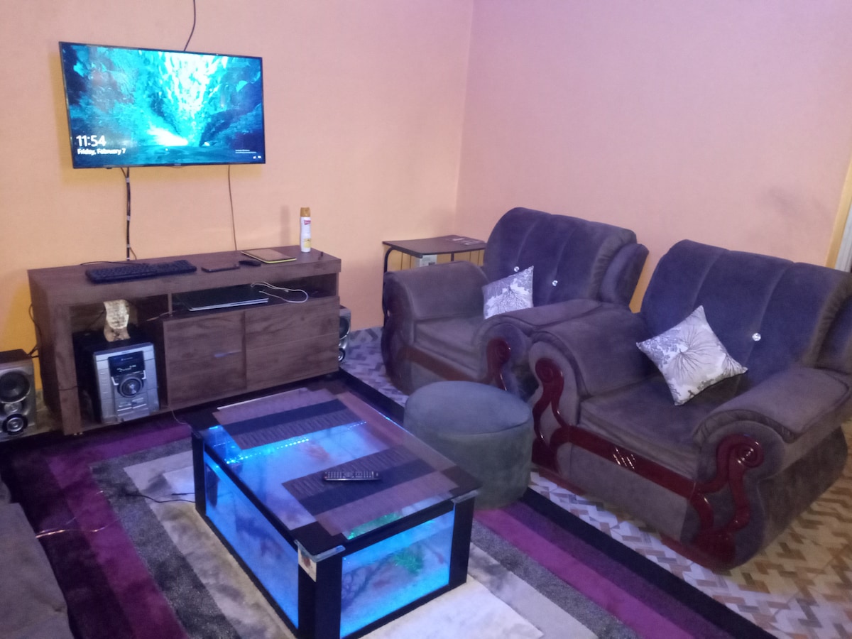 Quiet neighborhood, fully furnished apartment, Wi-Fi available, close to town ,market and main highway,hence transport is manageable.