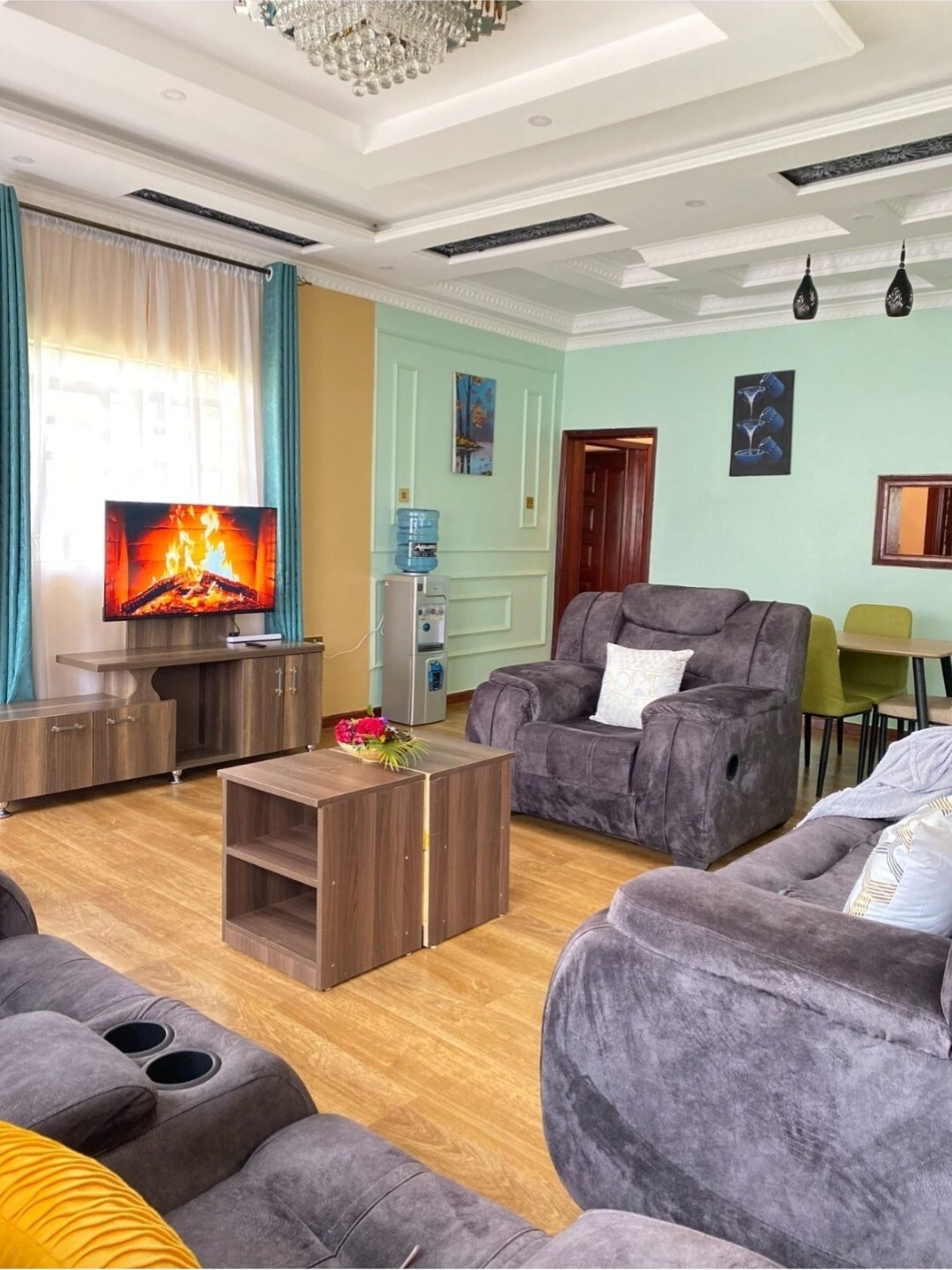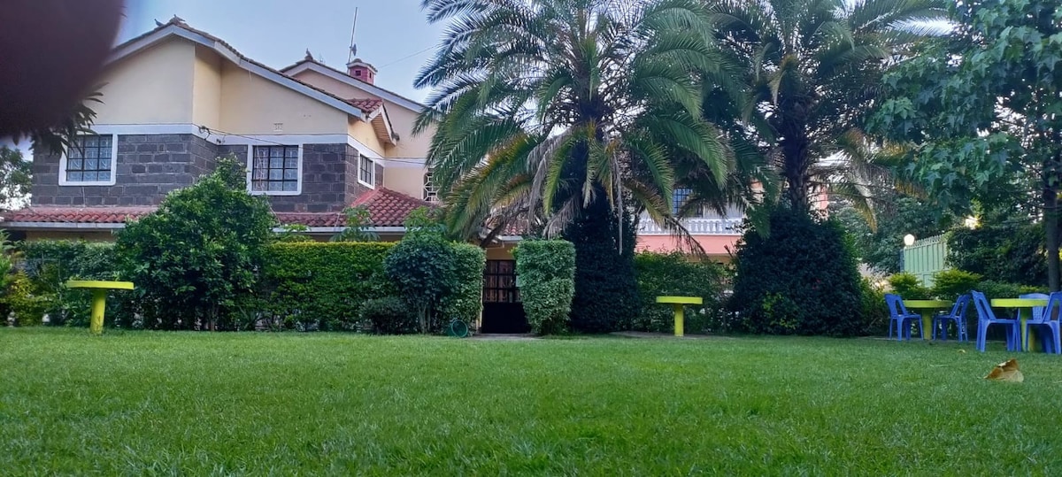 Have fun with the whole family at this stylish modern villa lcated in a safe location near Nakuru City Center. There is a power backup system. The villa has Four en-suite bedrooms with balconies, there is an extra room upstairs that can be used for entertainment/relaxing/ movie room - it has a large screen. For families with children, there is a baby cot bed. There is a 75 inch smart tv and WI-FI. Also there is Netflix.