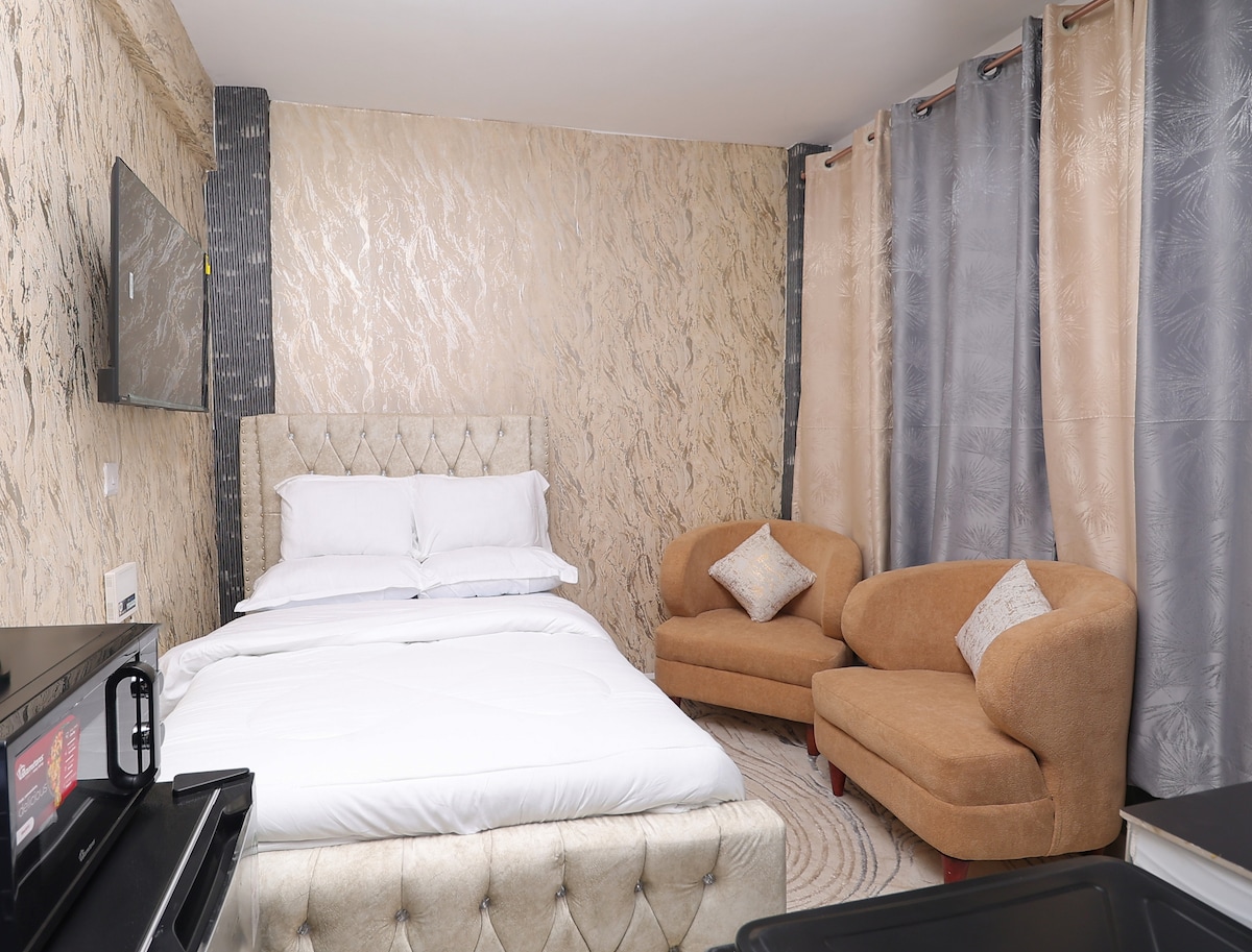 Luxurious and cozy Studio, 1bath Airbnb Located at Kunste Hotel Section 58 near SAROVA WOODLANDS, KFC &JAVA. 5 minutes drive from Nakuru CBD. Fully equipped with all modern amenities like dining area, Google TV, fridge, microwave, Induction cooker, free private parking, free WIFI. Enjoy easy access to popular shops and restaurants from this charming place to stay.