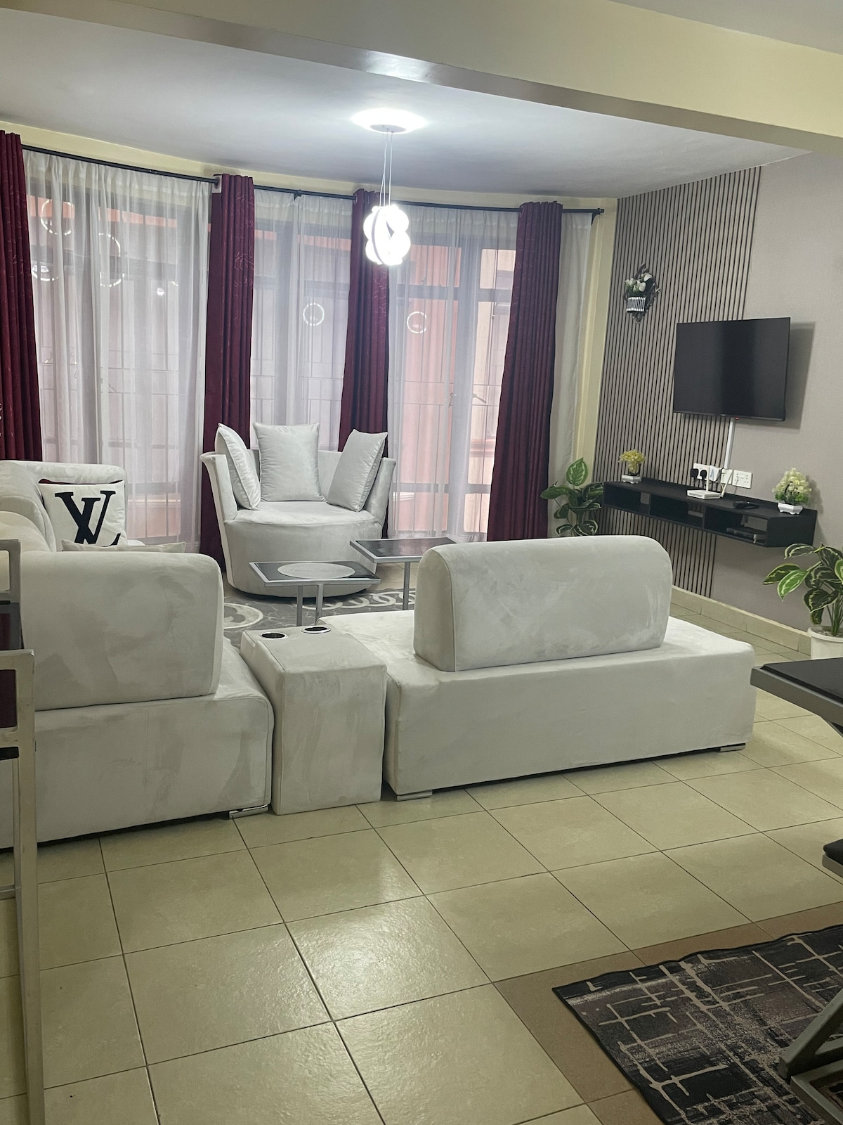 Luxurious and cozy 1bdr, 1bath Airbnb Located at Lower section 58 area near SAROVA WOODLANDS with a clear view of Lake Nakuru and Lake Nakuru game park (you maybe lucky to spot some wildlife) from the back balcony. 7-10 minutes drive from Nakuru CBD. Fully equipped with all modern amenities like Big sofas, dining area, Google TV, fridge, microwave, gas cooker, free private parking, free WIFI and Netflix. Forget your worries in this spacious and serene space.