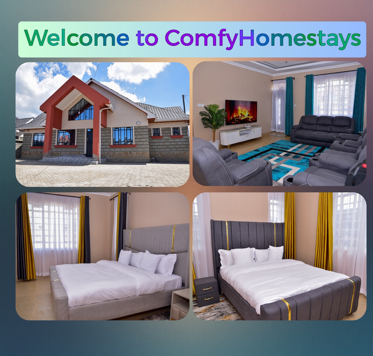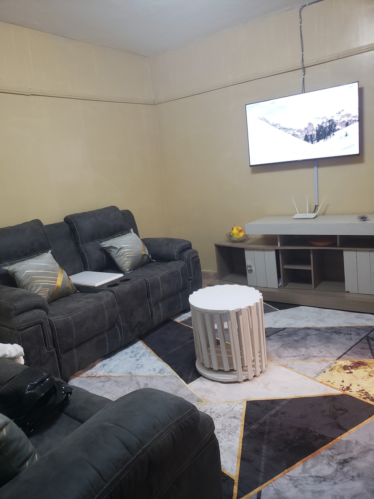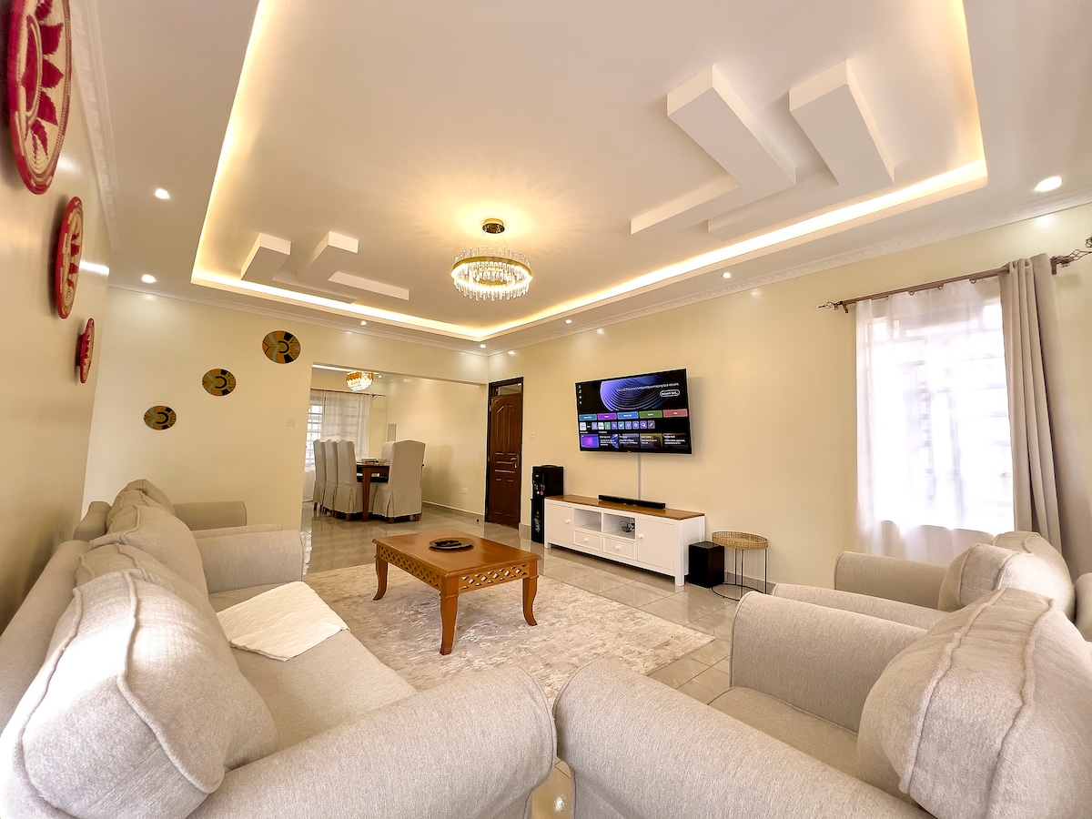 Have fun with the whole family at this stylish modern villa lcated in a safe location near Nakuru City Center. There is a power backup system. The villa has Four en-suite bedrooms with balconies, there is an extra room upstairs that can be used for entertainment/relaxing/ movie room - it has a large screen. For families with children, there is a baby cot bed. There is a 75 inch smart tv and WI-FI. Also there is Netflix.