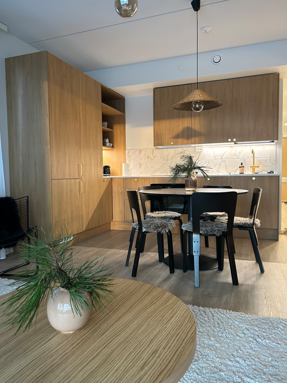 A wonderful studio in an excellent location! The bright and spacious studio is located right next to the Ainola park. A short walk to the center. The apartment has high-quality equipment: e.g. induction cooker, integrated dishwasher, integrated oven, tumble dryer. Apartment has stylish interior & beautiful dishware. There is 160 cm double bed and a third bed as an air mattress. A large glazed balcony with a seating group. 43" smart TV (e.g. Netflix), high-speed internet (200/200).