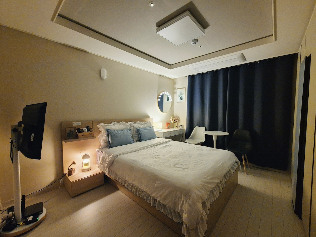 숙소 설명 ✅꼭 필독✅해 주시고 이용해 주세요!! ❤️"잠자리"라는 기본에 가장 충실하려고 "노력"한 공간입니다! ✅숙소 옵션✅ -삼성 스마트 TV -초고속 wifi지원 -삼성 시스템 에어컨 -삼성 스타일러 -드럼 세탁기 -일리머신기 -전기 포트기 ✅숙소 주방 옵셔✅ -인덕션 2구 -머그잔/맥주잔 -앞 접시 / 중 접시 -냄비 1개 -조리도구(국자,집개,칼,가위) -수저셋트 (2인 인준) 🙏저희 숙소는 간단한 조리 (라면정도) 가능 하세여 참고해 주세여! 후라이팬x ✅화장실/샤워실 옵션✅ -핸드워시 -칫솔, 치약 -폼클랜징 , 클랜징 오일 -샴프/컨디셔너/바디워시 -바디로션 -화장솜 , 면봉 -헤어드라이기, 고데기
