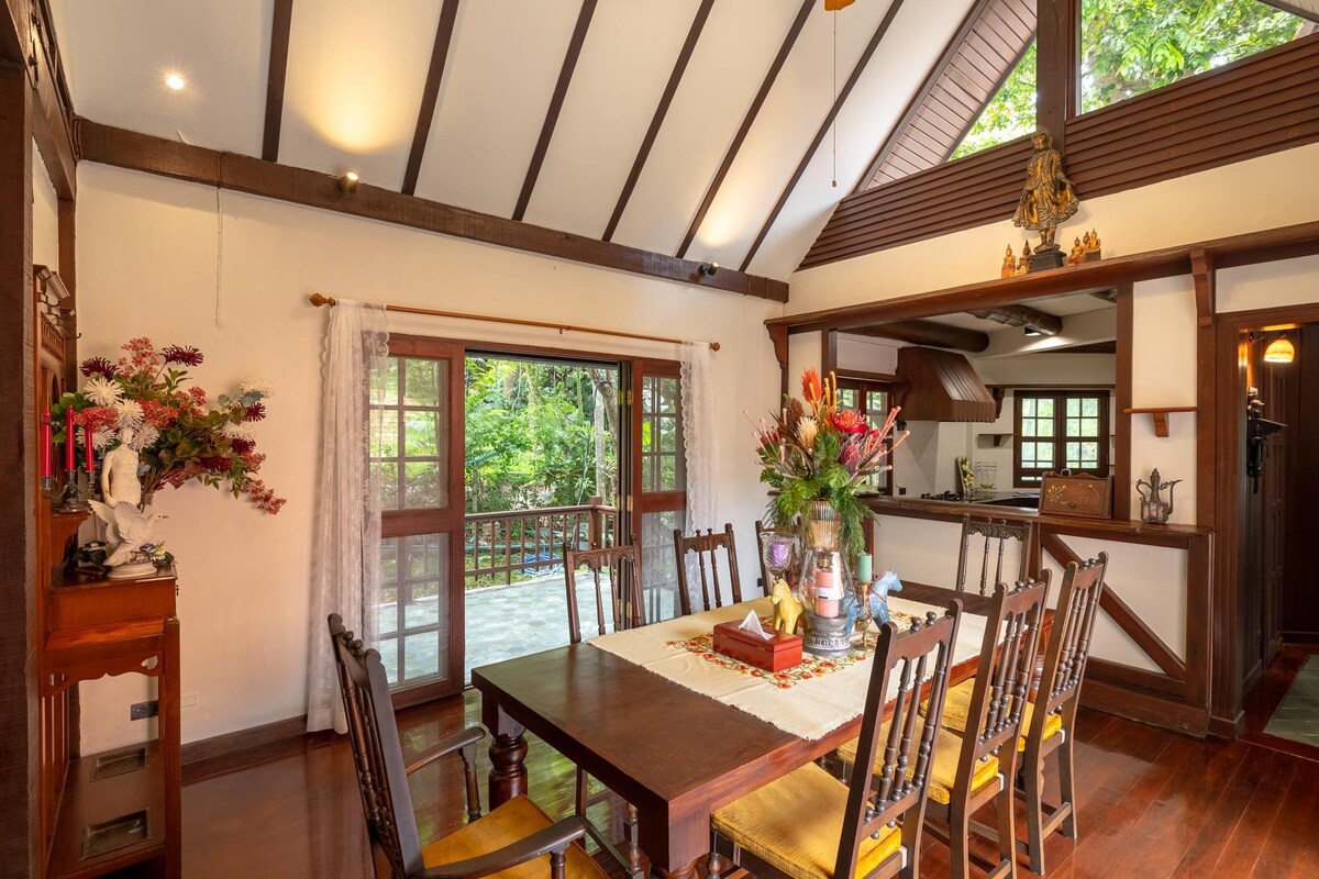 Discover the elegance of Lanna living in stunning 5-bedroom villa. Embracing a rich history and infused with vintage elements, this villa offers an unparalleled journey into the aristocratic lifestyle of modern Lanna. Spread across 2 floors, each bedroom comes with its own private bathroom with tub, ensuring privacy and comfort. The villa boasts a fully equipped kitchen, terrace, and a sprawling lawn perfect for vacationing, retreats, meditation, and peaceful living.Your exquisite escape awaits.