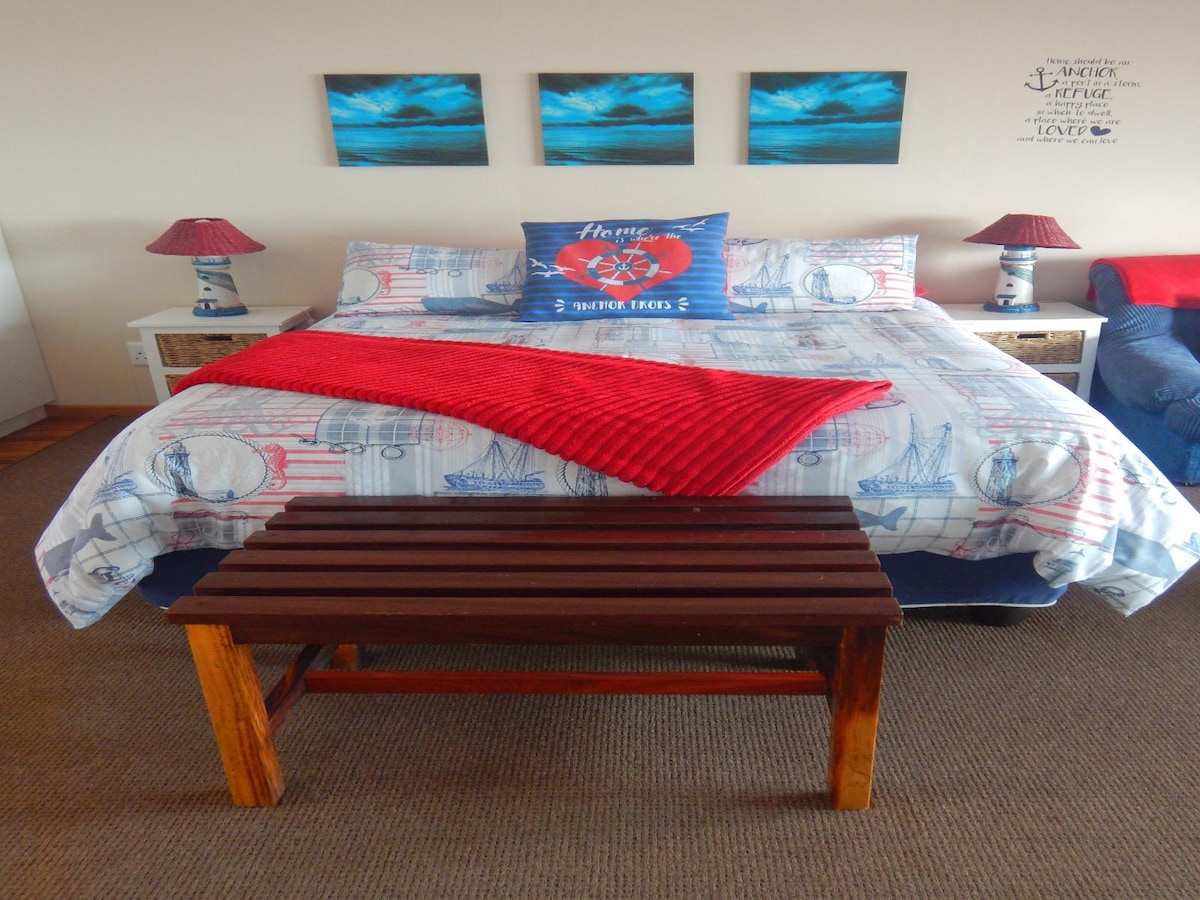 Aan’t See House and Apartment is situated in the quiet seaside village of Lambert’s Bay, and offers comfortable self-catering accommodation in a 2-bedroom house ( 1x king size and 2 single beds) and a 1-bedroom apartment (1x king size/ 2 single beds). Both the house and the apartment offer lovely sea views. The house and apartment is built on the rocks, with a small gate separating it from the sea.