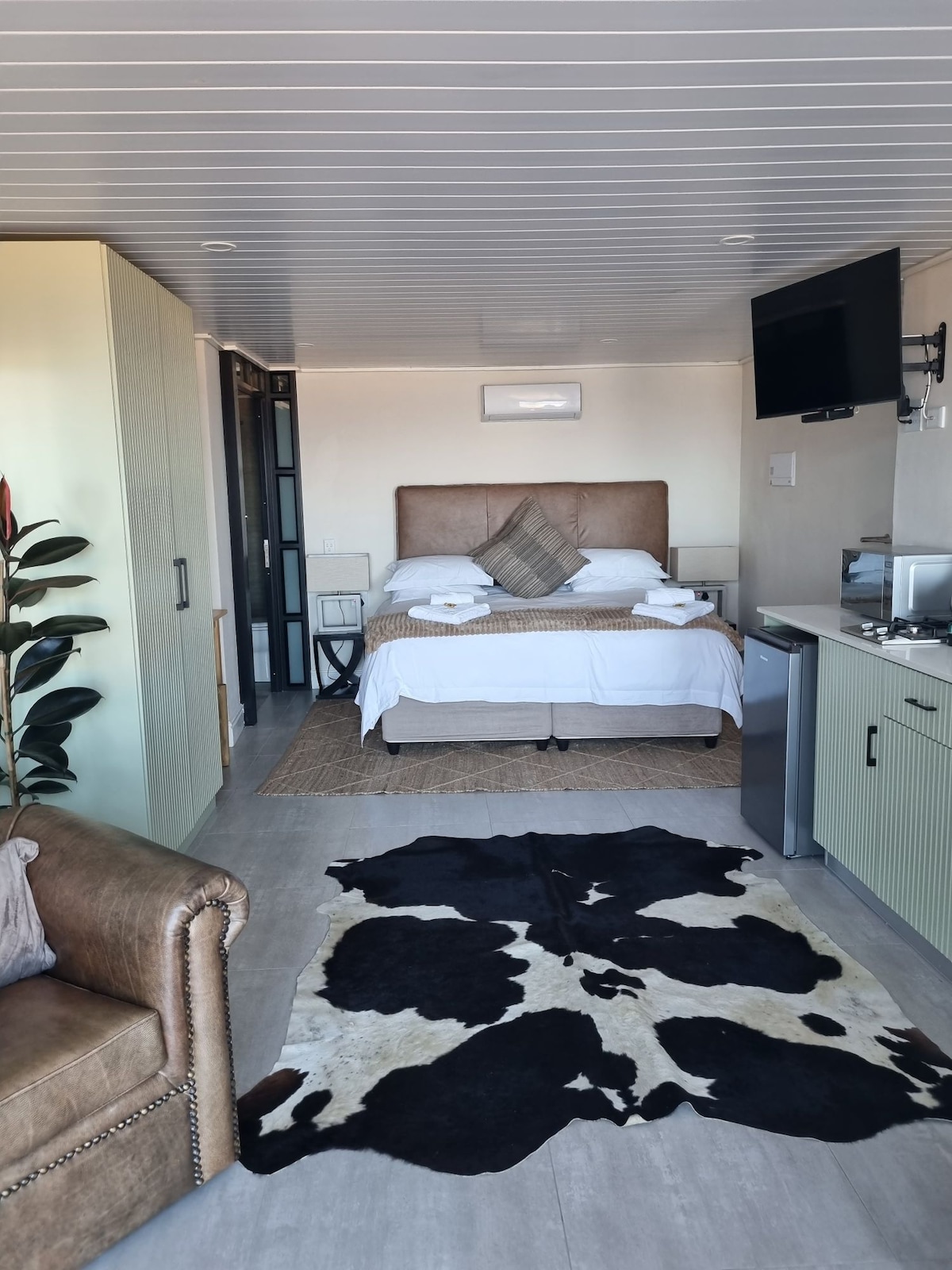 Secluded Garden Cottage in Vredendal, little town on the N7 in the heart of the Wine lands, Matzikama mountains and nearby West Coast beach. Stylish cozy Studio Cottage equipped with all the necessities for a comfortable and relaxing stay. Charming courtyard for Alfresco dining. Safe parking on premises, beautiful braai room, with outdoor kitchen & pool. Close to coffee shops, restaurants & town. Your home from home.
