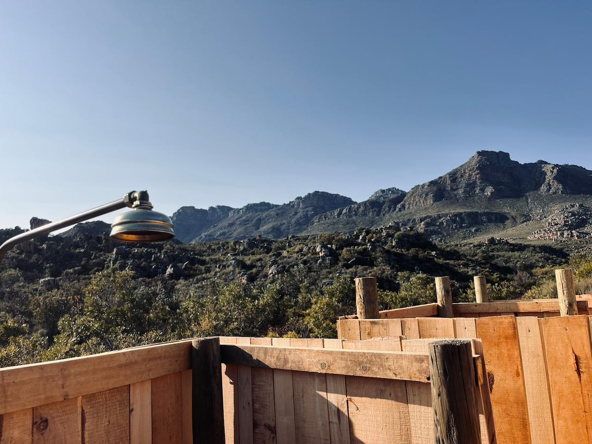 Private stand-alone cottage on a beautiful farm 1.5 hours north of Cape town and 30-40 minutes from Elands Bay. This is a very simple, off-grid, self-catering cottage with beautiful mountain views, a dam to swim in and hiking access to the entire 2000 hectare farm. The farm has established hiking and mountain biking trails, horse riding on request and established sport and trad rock climbing routes. The cottage has two fireplaces, a gas stove, fridge, a 'donkey' water heater and solar power.