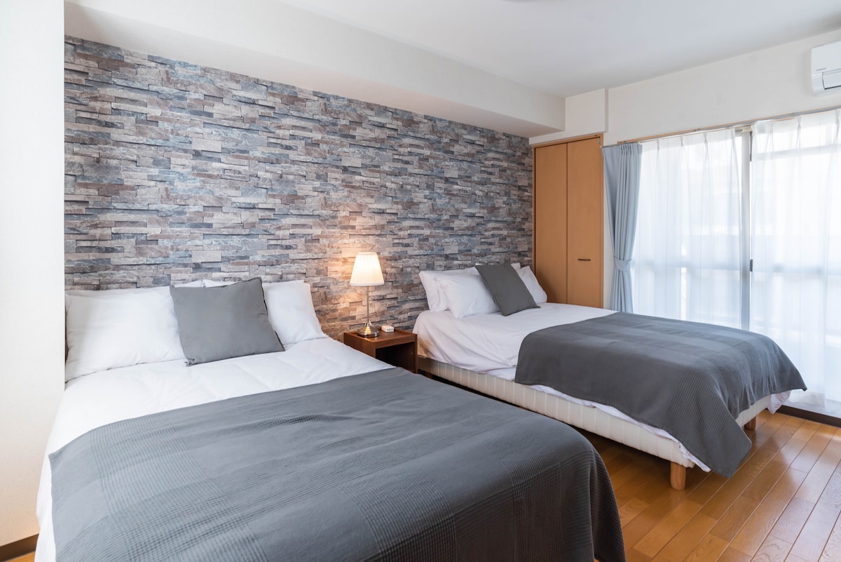 \\Newly opened in 2021// Recommended for family and group of friends. You can enjoy cooking. Two supermarkets and convenience stores in walking distance. 1 unit each floor so entire floor is yours. Please feel home at this apartment. 2bedrooms, 60㎡ 2 subway stations are nearby. You can easily access Namba, airport and other sightseeing spots. Equipped with projector. You can access to Youtube, Netflix, Amazon Prime and other contents.