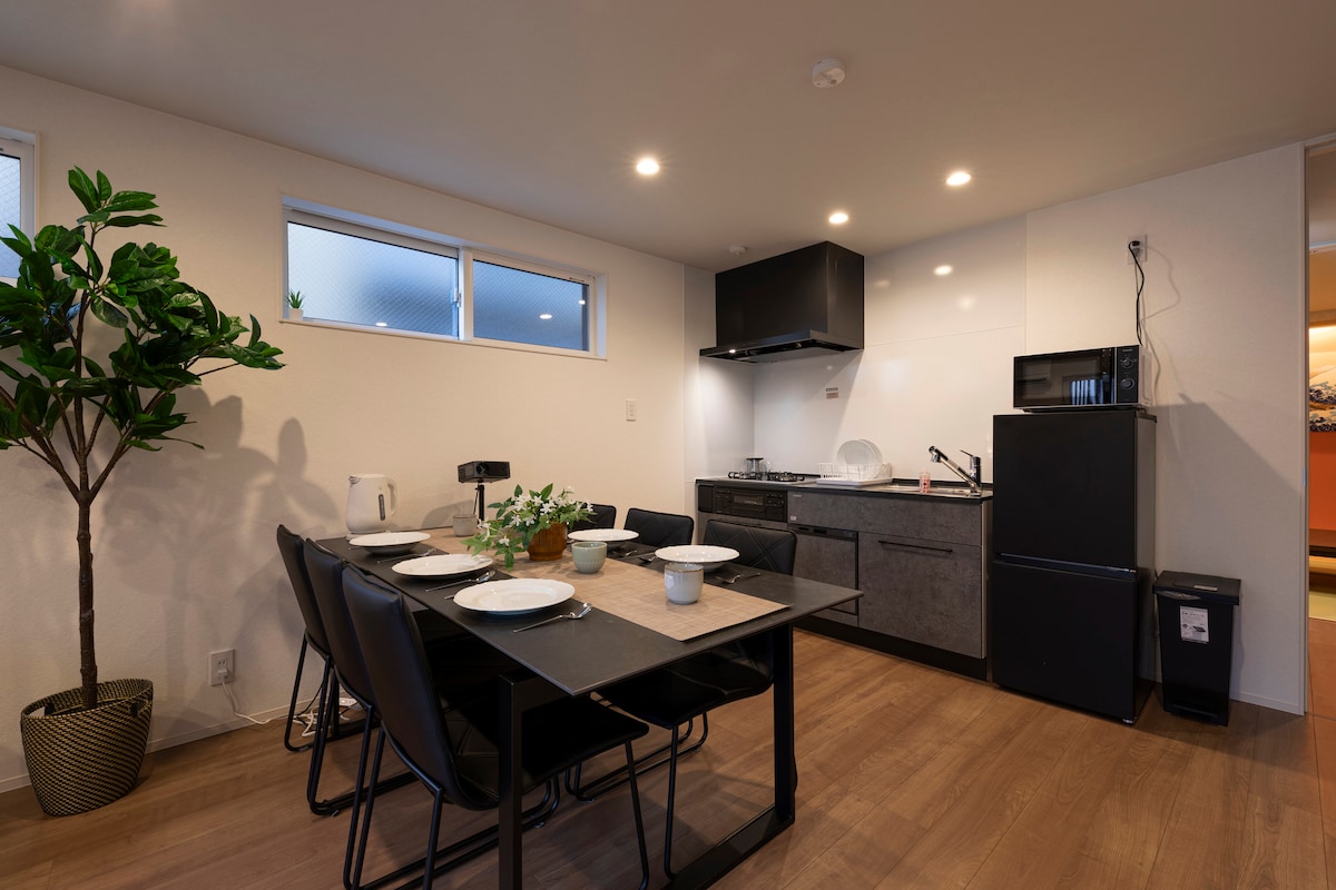 舒适与非日常完美融合的特别空间,时光在此缓缓流淌。以日式待客之心,为您提供令人流连忘返的极致住宿体验。 [优雅客厅] 本宿引以为傲的是配备精心挑选音响系统的优雅客厅。我们准备了丰富多样的Nintendo Switch游戏,您可在优质音响环绕中尽情享受游戏、音乐和影片观赏时光。 [宽敞餐厅&厨房] 本宿的魅力在于配有转角沙发的开放式餐厅空间。L型功能性厨房让大家可以一起享受烹饪乐趣,度过悠闲的用餐时光。 [日式庭院中庭] 本宿提供美丽日式庭院中庭,让您享受内心宁静的时光。忘却都市喧嚣,沉浸在宁静与美丽之中。 [极致沐浴时光] 本宿配备ReFa花洒头和宽敞浴室,为您营造至福的沐浴体验。消除一天的疲劳,享受放松时光。您还可体验具有美容效果的优质淋浴。