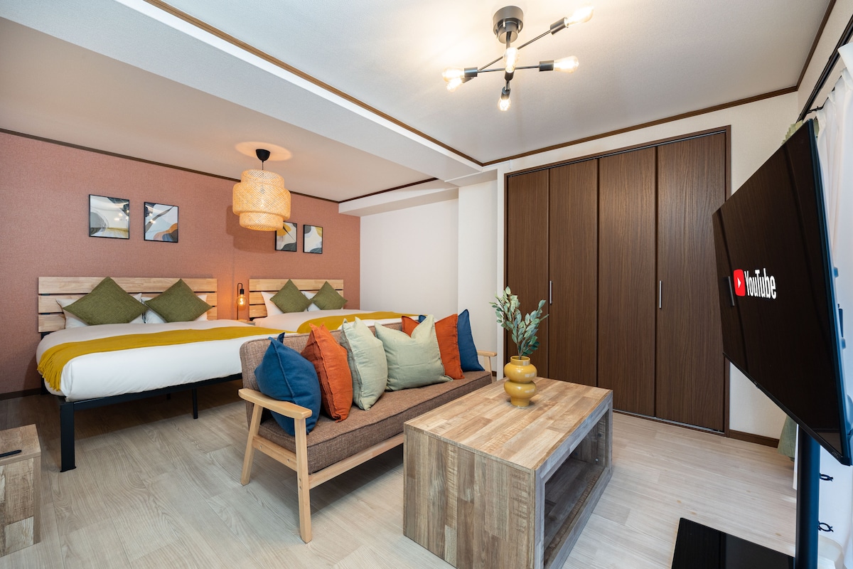 2024年6月新規オープン ★地下鉄恵美須町駅から徒歩2分 ★新世界と通天閣から徒歩8分でアクセス良好 ★心斎橋-難波の散策最適 ★180cm×200cmキングベッド1台 ★高速WiFi付き ★家電は全部日本大手メーカー製品のみを使用 ★洗濯乾燥機あり ★4Kテレビで、NetflixやHuluなどのネット動画や地上波TV番組をご覧いただけます! ※ネット動画サービスは、アカウントをお持ちの方のみご視聴いただけます。