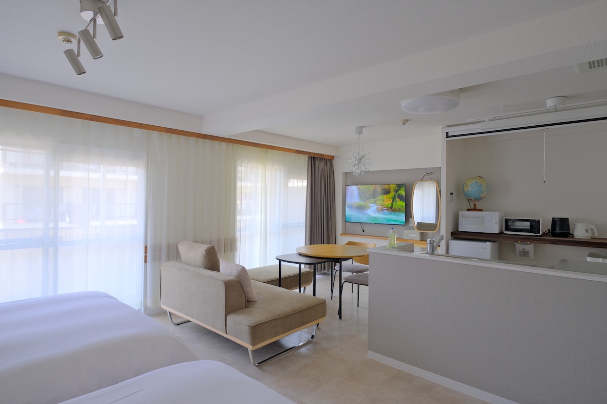 Welcome to our apartment, designed for people with special needs. Our fully accessible apartment features an open concept design, low beds, and a mini kitchen with all the necessary amenities. The private shower is wheelchair accessible, and grab bars provide additional safety. A private toilet with bidet. Our lounge includes a 55-inch TV, high-speed wifi, and comfortable furniture. Book your stay today and experience the best of Osaka.