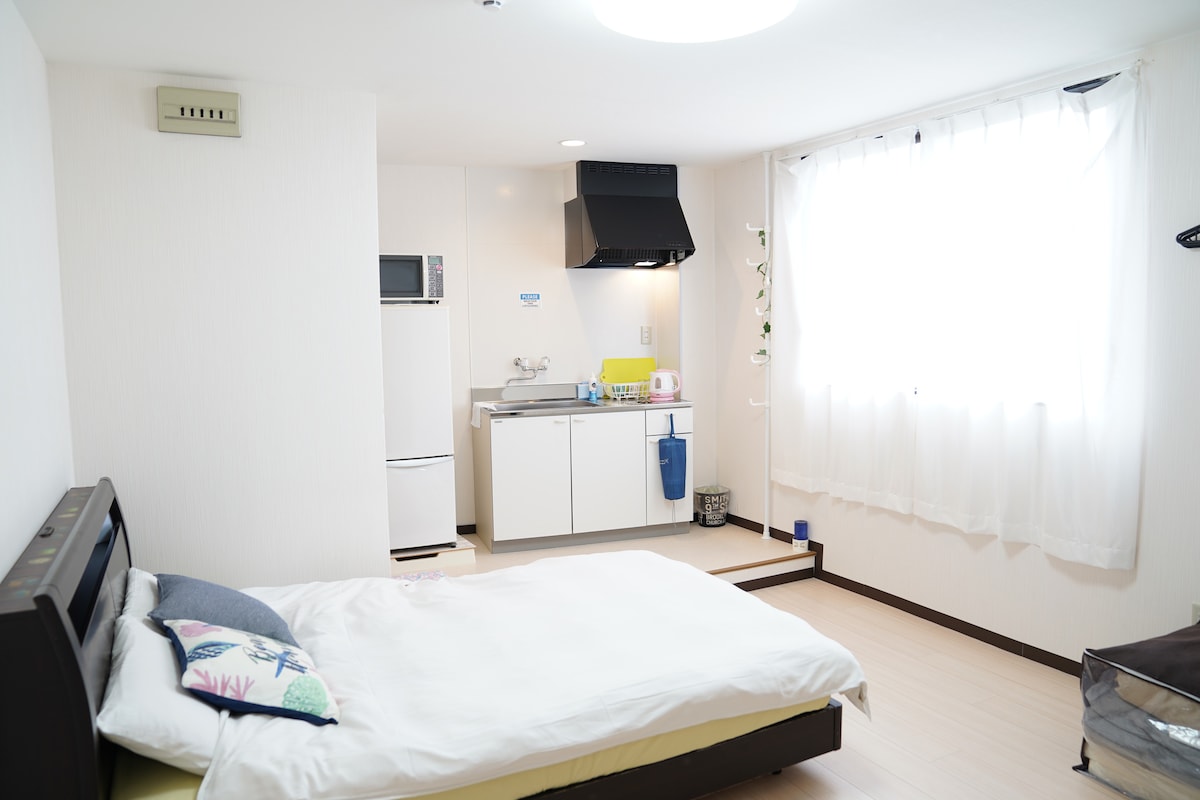 1K30㎡的设计民宿套房。到Osaka Metro圆顶球场前千代崎站只需步行3分钟。由圆顶球场前千代崎站到心斋桥站只需5分钟,到新大阪站23分钟,到关西机场65分钟。 往大阪观光的中心地,南部很方便,适合作为观光据点。 由著名设计人员所设计的房间,环境舒适。 ◆特徵 -在闲静的住宅街里的设计民宿套房 -1K最多可住4人 -步行5分钟内有超市和便利店 -厨具齐备 -完全包租 -自助入住系统 -免费使用洗衣机 (附免费洗衣剂) -充实的备品 (洗头水丶护发素丶沐浴露丶毛巾丶拖鞋丶牙刷丶化妆绵丶绵花棒丶剃刀) -取得大阪市特区民宿许可 -日语・英语・国语OK -配备高速WiFi