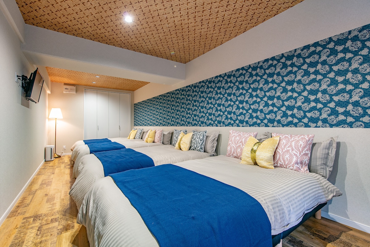 5-1NewOpen/4人双大床|步行即到地铁|直通机场/难波/天王寺/梅田|眺望通天阁&阿倍野