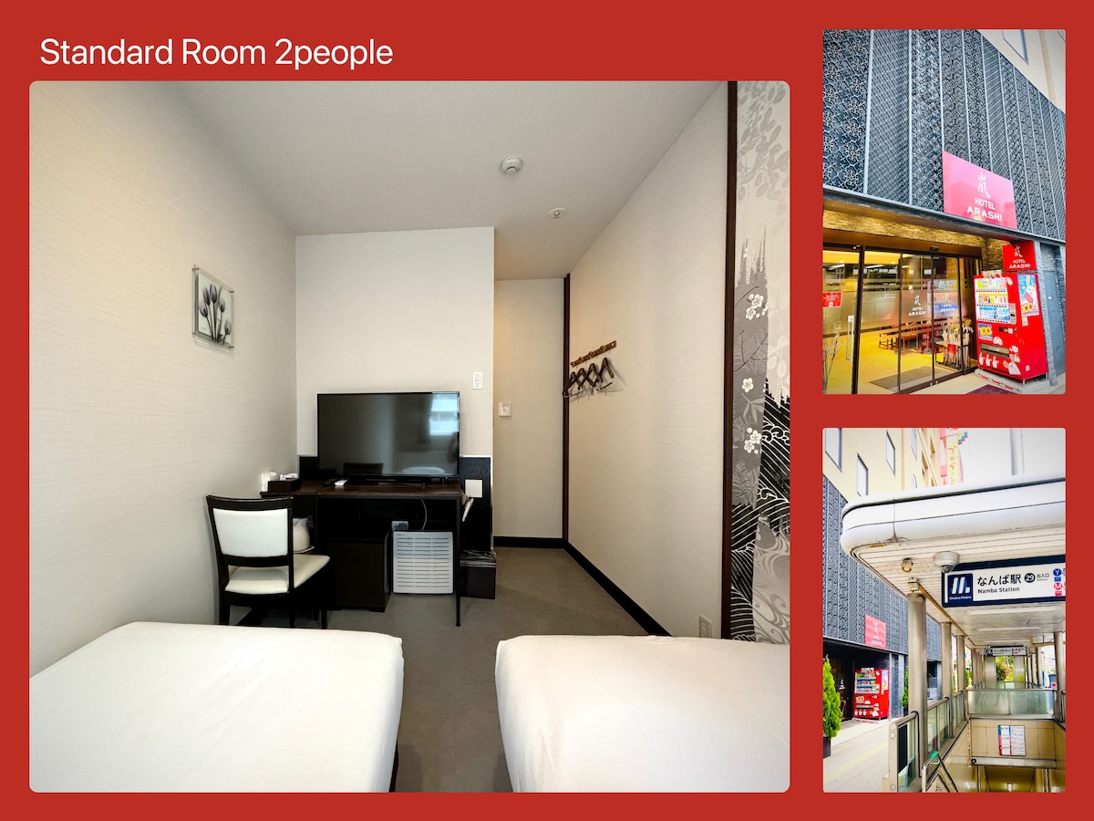 大阪/难波/步行5分钟/团体/2人/长期住宿/双床