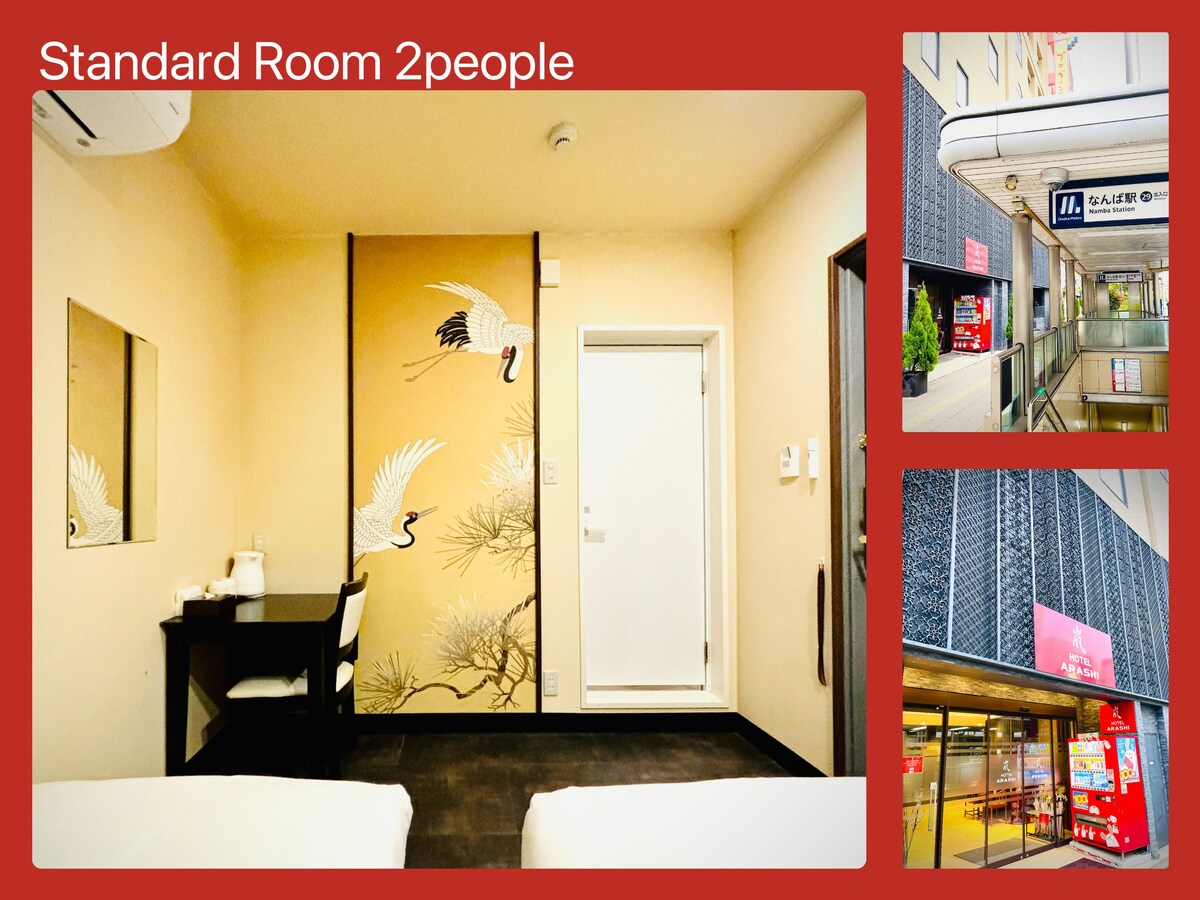 1-2【24小时前台服务】2人标准间|JR今宫站步行3分钟|毗邻难波、心斋桥|直达梅田、机场、USJ