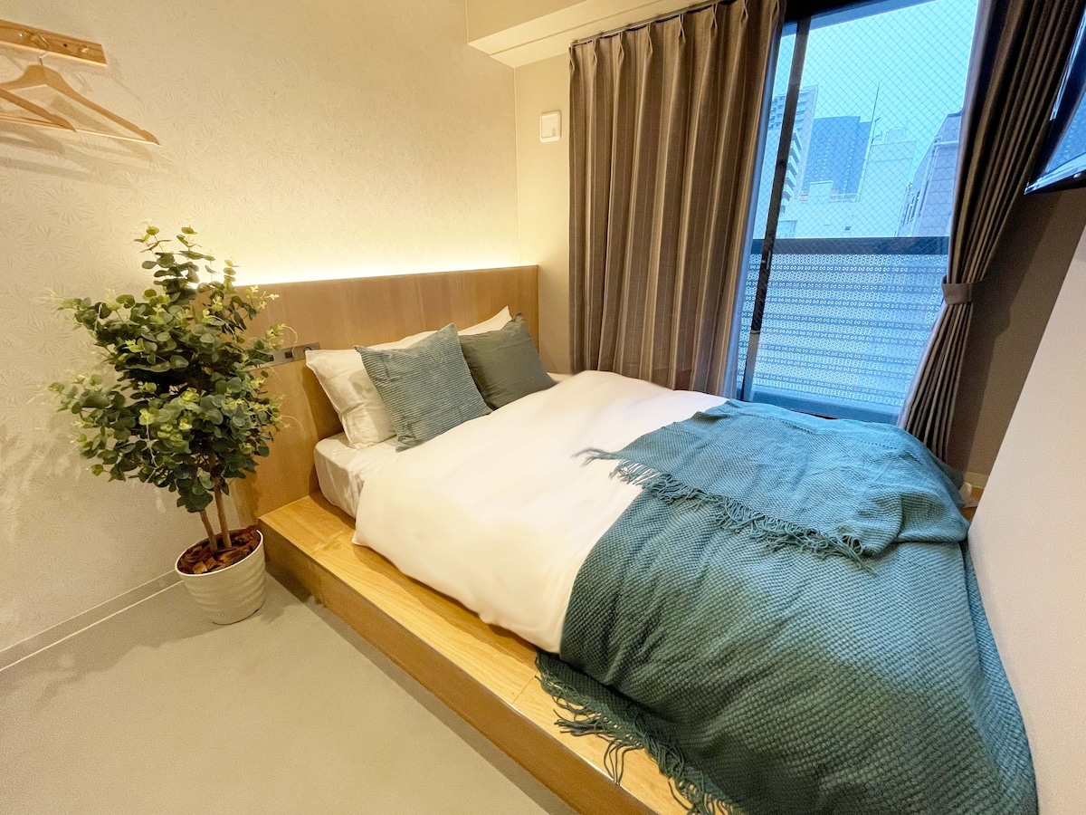 72「距心斋桥商店街2分钟」2人大床房|大丸百貨150米|道頓堀、日本橋、難波徒步圈內|中文可