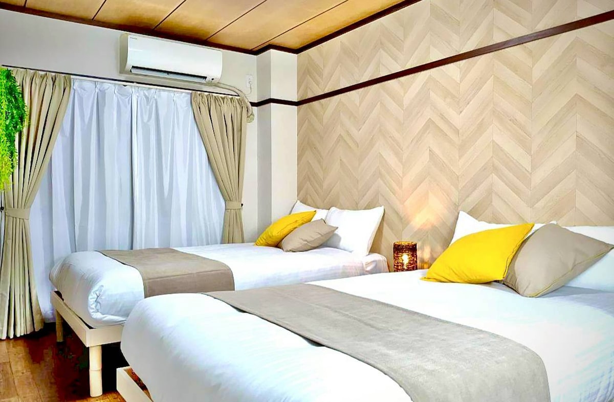 川沿いに建つ心地よい宿泊施設です。広々と38㎡のお部屋からは美しい川の景色を一望でき、朝夕の水辺の景色が旅の思い出をより特別なものにしてくれます。観光にも便利な立地で、道頓堀やなんばエリアへも徒歩圏内。静かで落ち着いた雰囲気の中、大阪らしい滞在をお楽しみください。 内1寝室目1.7mベット×1 内2寝室目1.1mベット×2 当ホテルでは 🩶フロントサービス(昼間) 🩶荷物預かりサービス 🩶有料の空港送迎サービス(要予約) 🩶オートロック があります。