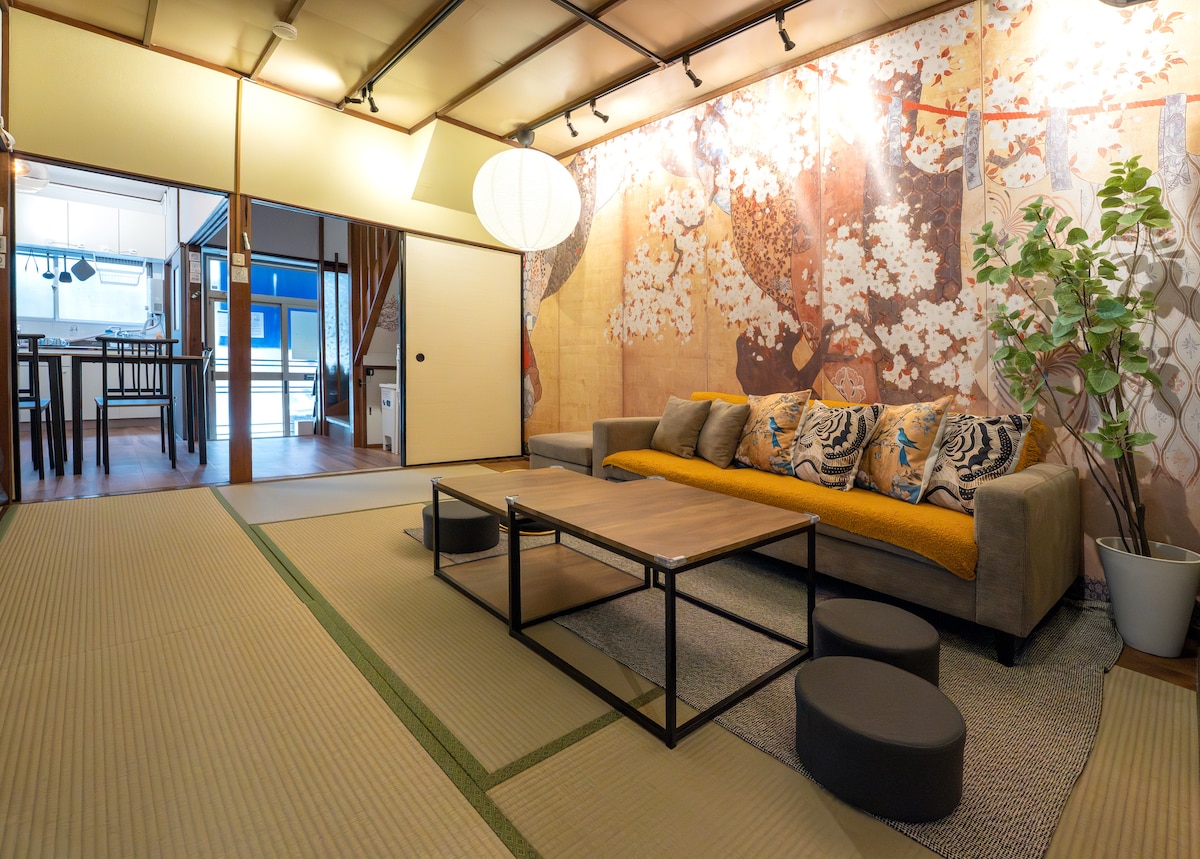 とても便利な場所なので『Nagomi 3』に滞在して観光を楽しんでくださいね。 宿泊先 40㎡/2階の住宅を貸切、専用玄関は道路に面していて、直接お部屋に入れます。玄関を入ると階段があり、二階のお部屋へと続いています。 スーパーも近くにあるので、自宅のように料理もしていただけます。 和室の畳の香りと木のぬくもりを感じる落ち着いた雰囲気のお部屋です。