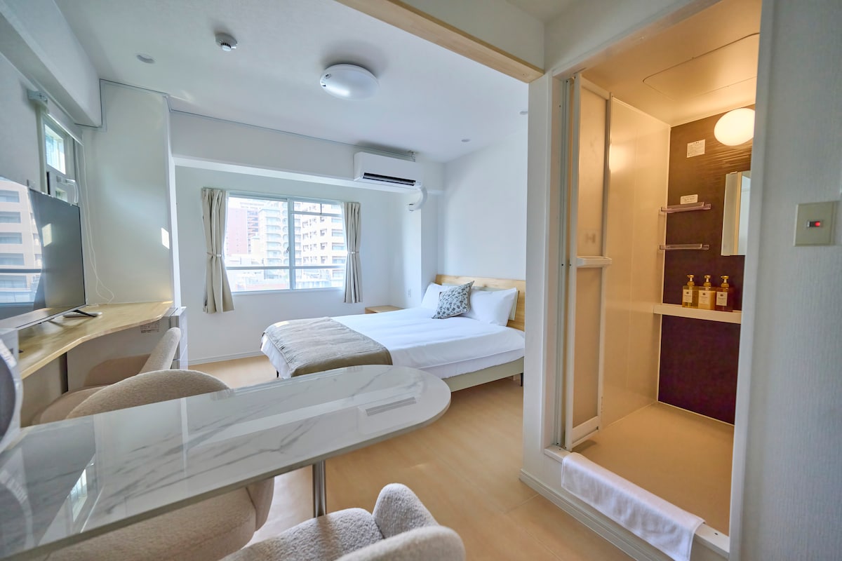 The room has 31m2, clean and cozy, located 2 min walk to metro station and airport direct bus stop,3 min. Namba and Dotonbori 5min by metro. This building locates in the downtown, it may sound from traffic and construction noise daytime.Police and ambulance siren even in the midnight. About babybed, costs 1000 yen for 1 night, baby chair cost 1000yen for your stay.Heavy dirty stains to carpet and wall by kids ,add extra cleaning charge(5000yen ) This building with elevator to guest room .