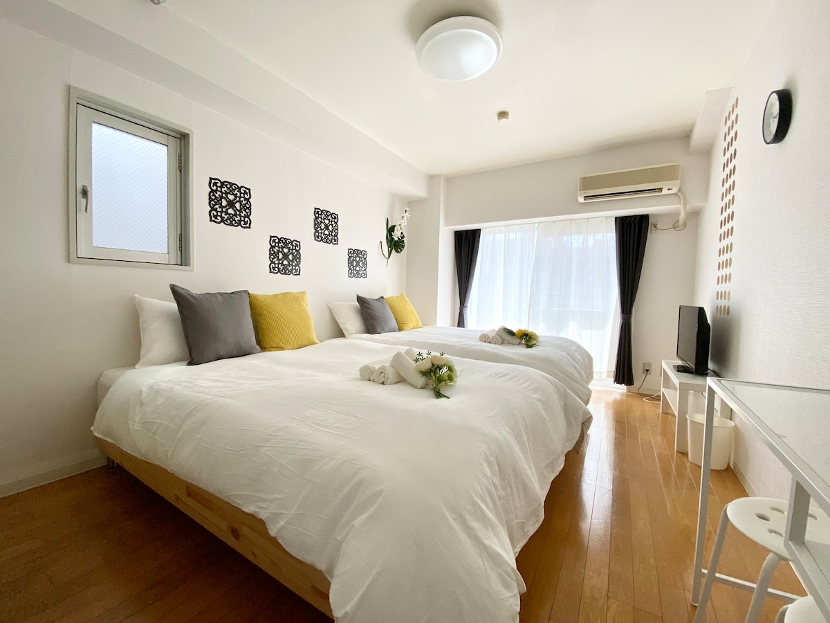 两卧套房!近铁日本桥站步行5分钟!临近难波/心斋桥/道顿堀/黑门市场!可4人入住!