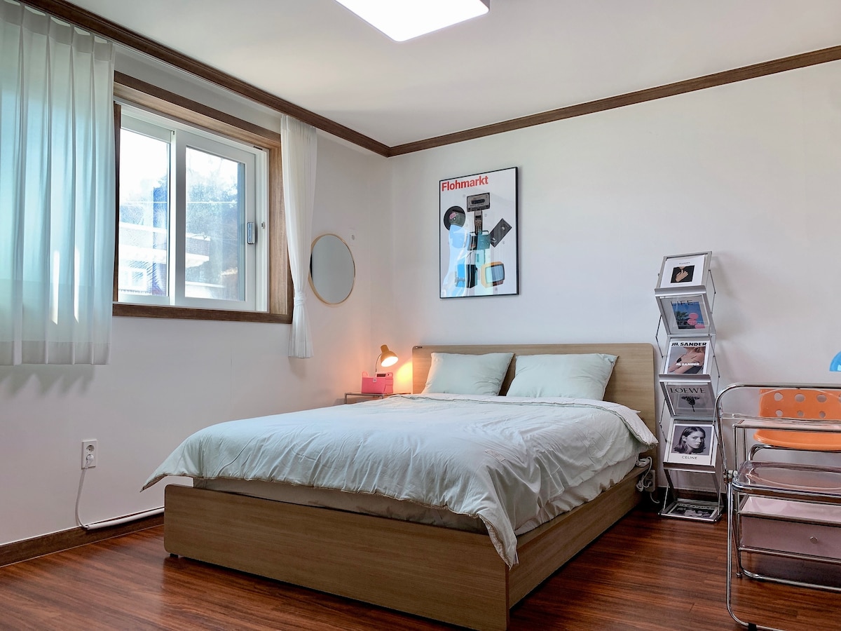 80년이 되어가는 오래된 한옥에 레트로 감성 한스푼 추가했습니다. 다채로운 꽃과 나무가 있는 정원에 귀여운 길냥이들도 가끔씩 드나드는 평화로운 집!! 방바닥에 누워 아름다운 서까래를 감상하고 바람좋은 툇마루에 차 한잔의 여유도 누려보고 번잡한 도시와 익숙함을 벗어나 잠시 내려놓고 쉬어 가시길 바랍니다. 가 볼만한 곳으로는 당항포 관광지, 장산숲, 공룡박물관, 상족암, 학동 돌담길, 송학 고분군, 옥천사, 구절산 구절암 출렁다리가있고 섬처럼 한적한 동해면을 차로 한바퀴 돌다보면 거칠게 일렁이던 마음속 소용돌이도 시선닿는 잔잔한 호수같은 바다 풍경에 어느듯 가라앉게 됩니다. 곳곳에 위치한 멋진 바다뷰 까페에 들러 커피 한잔의 여유도 누려보고 눈에 뛰는 낯선 식당에도 들러 지역의 맛도 경험해 보시길 권해드립니다