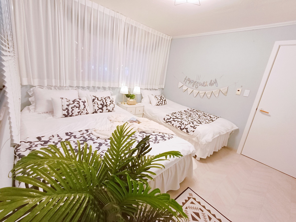 편안한 휴식과 소중한 모임을 따뜻한 햇살과 막힘 없는 뷰를 즐길 수 공간으로 준비했습니다. 쾌적한 침대와 깨끗한 침구로 편안한 객실을 준비했습니다. ●인원에 따른 침구류 준비 예시 -2인 예약시(기본) 퀸사이즈 침대 1개 준비 -3인ㆍ4인 예약시(추가) 퀸사이즈 침대2개 준비 ※위의 기본 침구 제공외 다르게 넓게 침대를 사용하고 싶을 경우 호스트에게 미리 요청 부탁드립니다 송도달빛축제공원, 송도현대프리미엄아울렛, G타워, 연세대 국제 캠퍼스, 인천대인근 위치에 있습니다. 즐거운 여행에서 기억에 남을 숙소가 되길 바랍니다. 장박일 경우 메시지로 연락 주세요. 송도국제도시에서 좋은 여행 되세요.