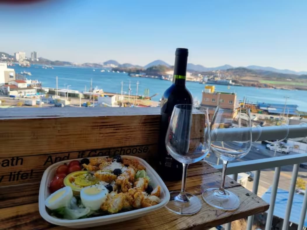 Genieße dein gemütliches 1-Zimmer-Apartment mit privatem Balkon und wunderschönem Meerblick! Nur 2 Autominuten (18 Min. zu Fuß) vom Deutschen Dorf Namhae entfernt. Das Apartment bietet modernen Komfort im charmanten, deutschen Backstein-Stil mit liebevollen Details und entspannter Atmosphäre. Der großzügige gemeinsame Außenbereich mit wunderschönem Meerblick lädt zum Verweilen ein mit Gartenhaus, Sitzbereichen, Schaukelstuhl und Grill. Ideal zum Picknicken oder frühstücken bei Sonnenaufgang.