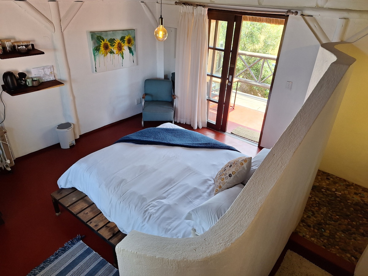 STUDIO CACAO, on the edge of the Namib with a wonderful climate, self catering, single rate for 1 or 2 people, double bedroom, memory foam mattress, bathroom-wc, veranda-kitchen, terrace, B.B.Q., all secure, in the bush, at 7 minutes from town, overlooking garden and bush, very quiet place to relax. STUDIO CACAO benefits from an alcov-cabin with an individual bed (200X80) wich can accomodate if necessary, the sulky or the snorer, luggage as well.