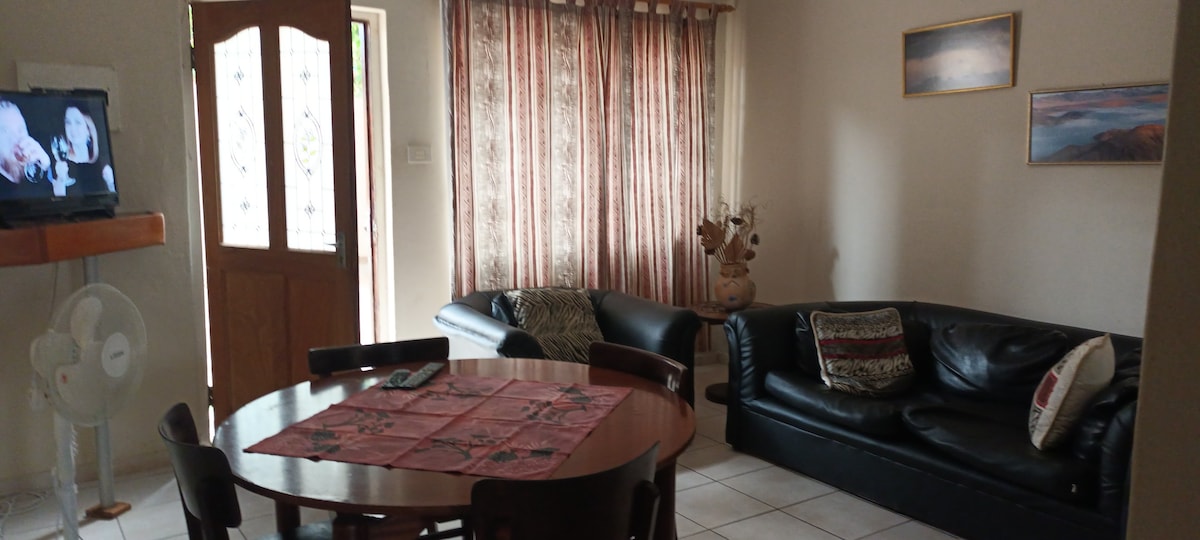 This modern open plan apartment accommodate 2 people with 2 luxury single beds. A private bathroom with shower and separate toilet. Fully equipped kitchen fridge, microwave, mini chef stove, fan, DSTV TV,premium package & wi-fi. Guests have own access to a private garden and free parking on premises to book for your perfect family holiday.