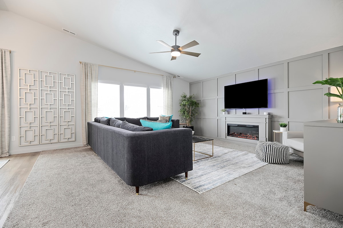 Award winning floor plan with a perfect layout for entertaining guests. Some of the features of the home include laminate flooring, quartz countertops, soft close cabinets, under cabinet lighting, gas range, stainless fridge and dishwasher. The living room offers very comfortable leather reeling sofa's with heat & massage. Very comfortable backyard with many amenities including a pool, hot-tub, bbq and plenty of seating. The neighborhood is quiet & provides walking paths and access to greenbelt.