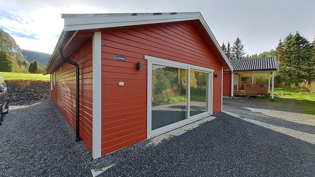 Moderne nytt hus/leilighet på to plan. Fantastisk utsikt mot sjøen. Morgen og kveldssol. Egen uteplass med møbler. Fin destinasjon for sportsfiskere og friluftsinteresserte. Ligger 1 km fra butikk og turistanlegg med båtutleie.