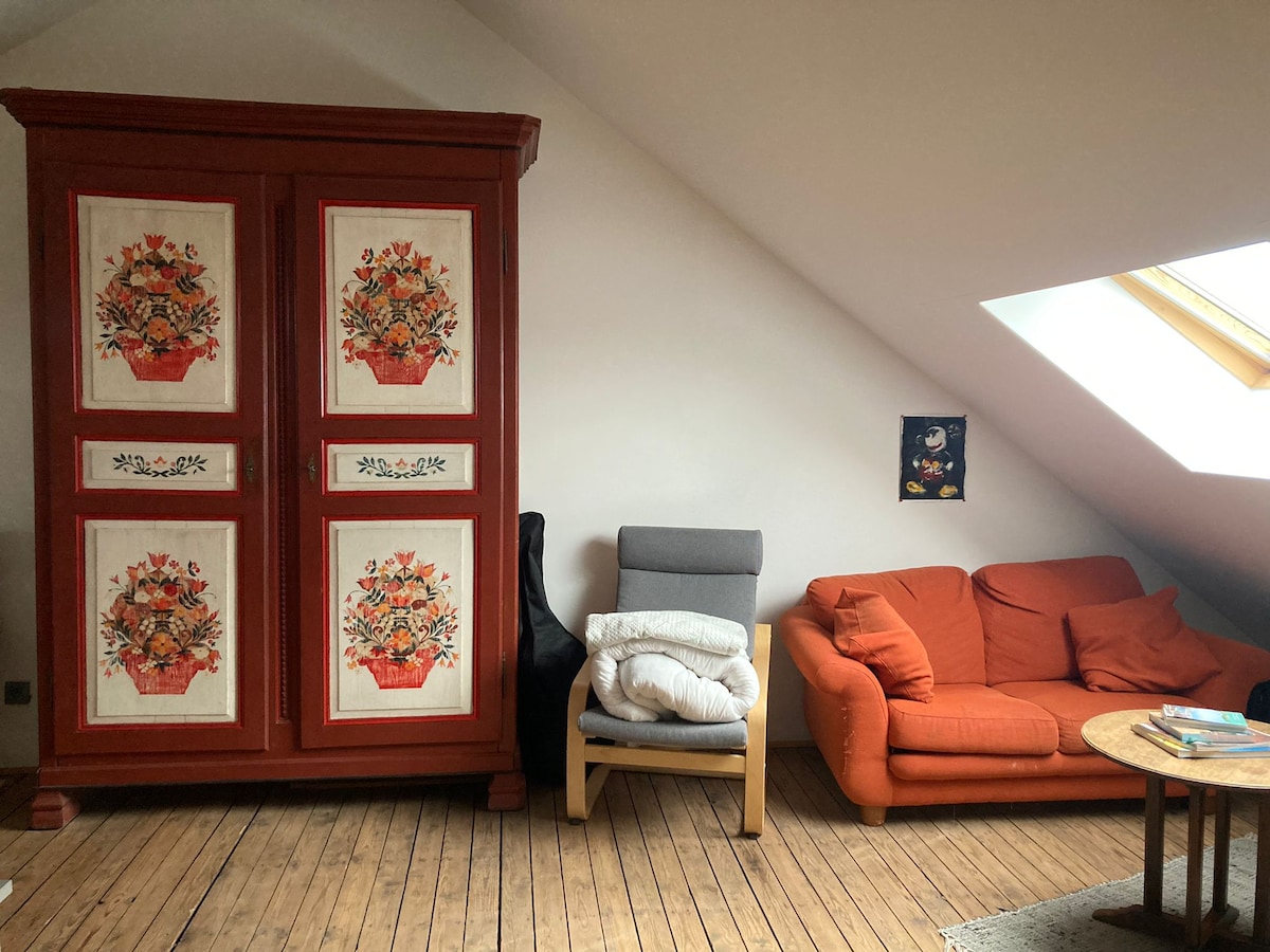 Pour un séjour au calme, dans le cadre bucolique de la campagne brabançonne, le studio MêCotCot, agréable et atypique, se trouve dans un espace rénové en haut d’une grange. Ici, vous dormirez cosy et en toute tranquillité juste au-dessus des chèvres et des poules. Une expérience unique et inoubliable. Studio confortable avec entrée indépendante, grande terrasse en bois, vue sur les champs, cuisine, salle de bain, petit salon agréable et tout ce qu’il faut pour passer de bons moments.