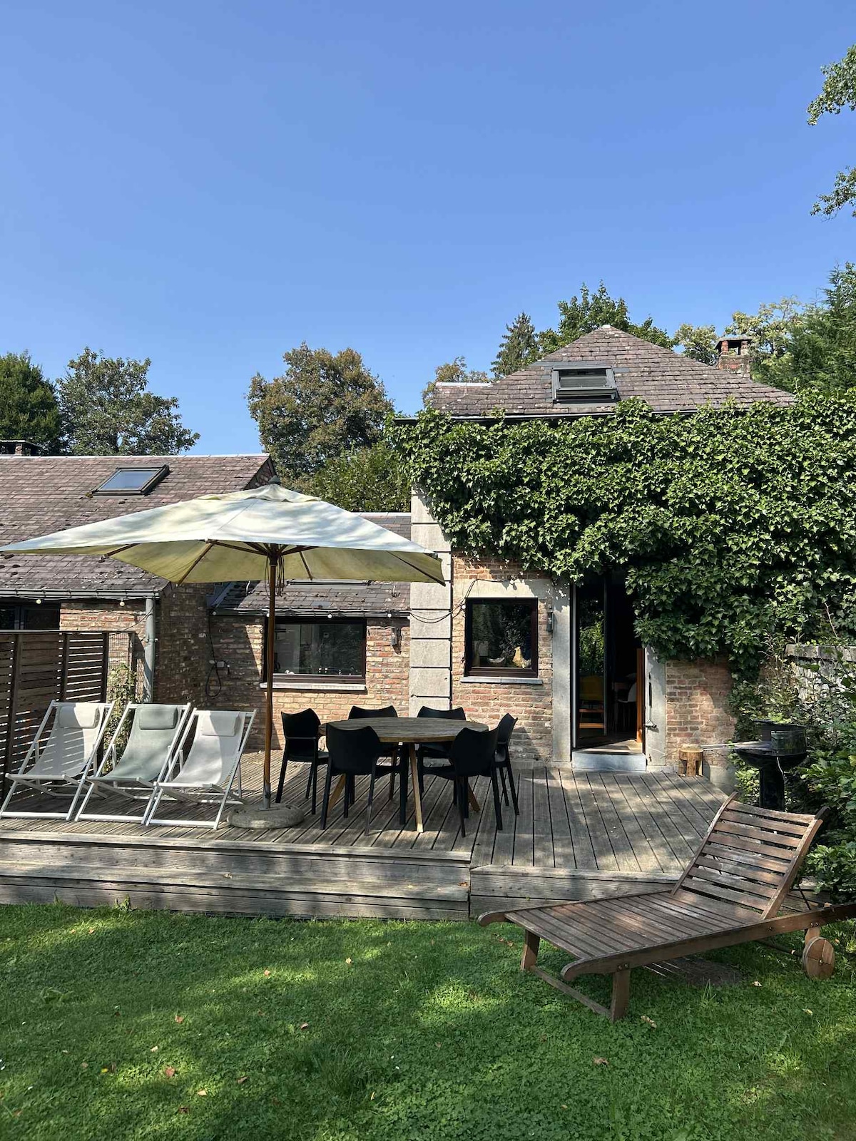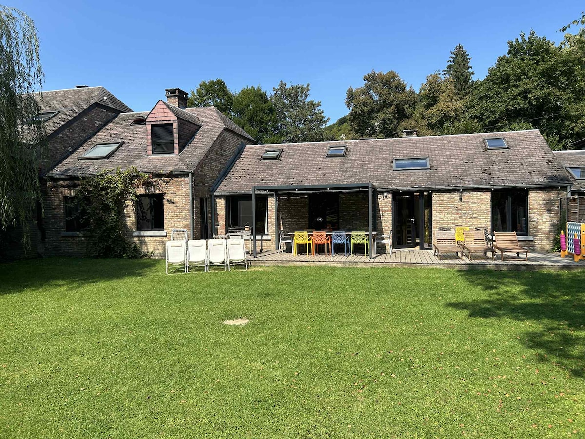 Maison d'hôtes bordure de Meuse construite en 1752 rénovée en contemporain avec un Wellness privé sauna infra-rouge dans la maison et jacuzzi extérieur . Elle est nichée dans la magnifique entité de Profondeville (Lustin) où la Meuse est majestueuse et où on retrouve un havre de paix. Une pause dans notre vie active. L'intérieur est contemporain avec une décoration cosy et un feu de bois double face donne juste l'envie de se poser En été à votre disposition un paddle et un Kayak . Magique