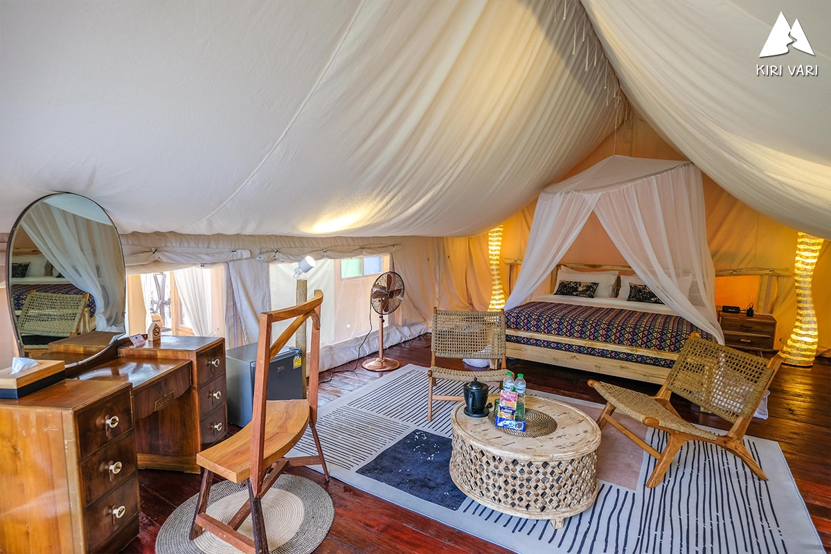 Luxury Tented Camp Moose . สำหรับเต๊นท์นี้ของเราตั้งชื่อว่า "มูส" เพราะคิดถึงเจ้ากวางมูสที่มาทักทายตอนเราแวะไปเยือนแถบสแกนดิเนเวีย เพราะห้องนี้แต่งเป็นแนว มินิมอล ใกล้เคียงกะสแกนดิเนเวียสไตล์ แถมยังมีที่แขวนเสื้อไม้เป็นรูปเขากวางน่ารักๆ คอยต้อนรับทุกๆ ท่านที่มาเยือนกันอีกด้วย โทนสีห้องนี้เลยจะออกแนวเบาๆ สบายๆ ใช้โทนสีขาว และสีไม้เป็นหลักจ้าว + Free Mini Bar ในบ้านทุกหลัง + Free อาหารเช้า + Free Afternoon Tea Set + Free บริการ ตีฟองอ่างนํ้า วันละ 1 ครั้ง