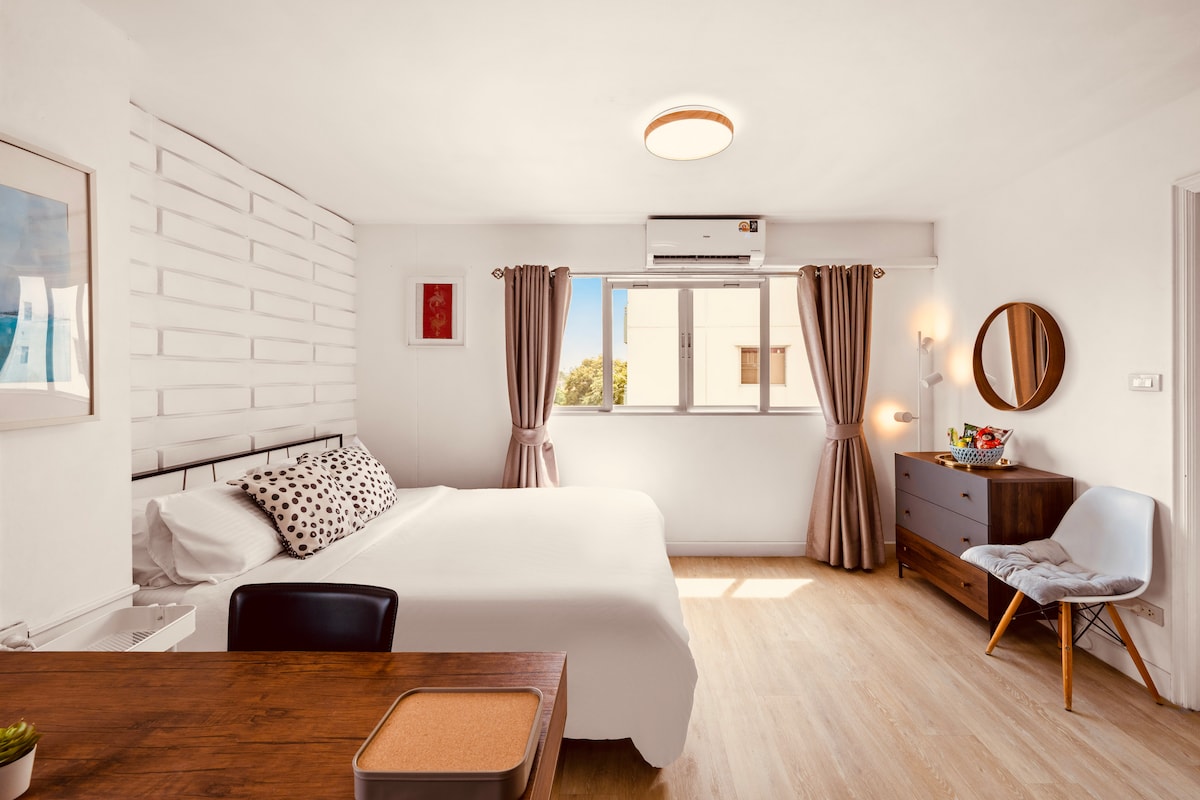 宽敞的2卧复古套房,靠近河畔和暹罗天地(IconSiam)