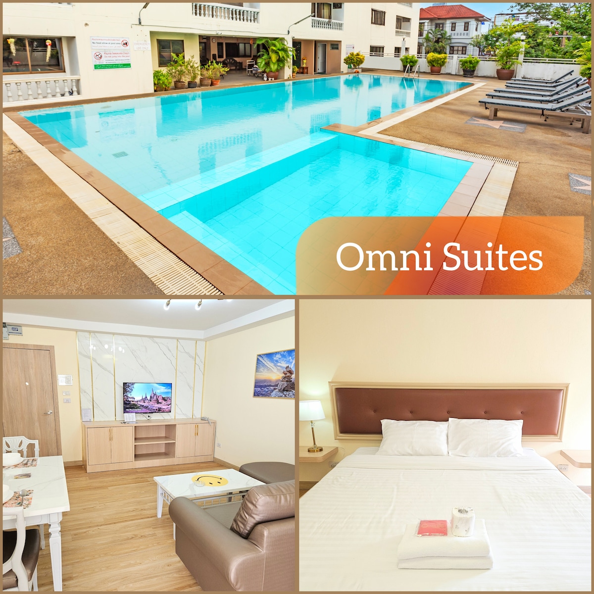 2 bedrooms,2 smart TV , double door refrigerator,digital household appliances, fully equipped kitchen. Free golf car service from lobby to main road (daily 5:30am-24:00pm), it will take around only 1 minute) Opposite supermarket BIG C , near by Tesco Lotus Extra,Movie Plaza , Night market. 独立双卧,主卧高档舒适大床1.8米*2米;副卧1.6米*2.2米超大床.两台大屏智能电视,有线电视及高速网络。免费高尔夫球车往返接送住客到主干道,车程70秒 公寓对面HABITO商业街Boots药妆店,ATM,7-11超市,各国餐厅,星巴克,Subway. 公寓对面BIG C大超市,TESCO LOTUS 易初莲花特大超市,影院,夜市,按摩街