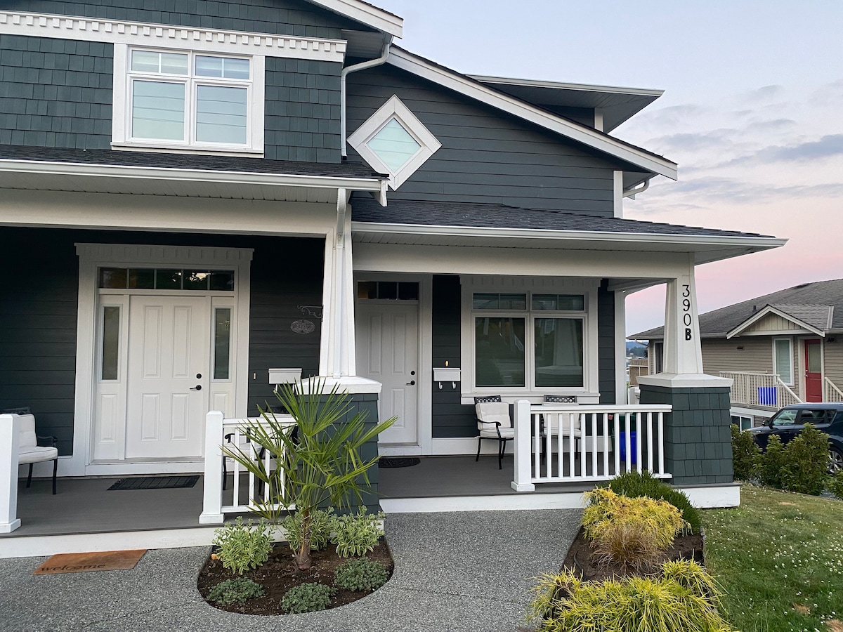 Waterfront, three bedroom plus loft home with over half an acre on Nanoose Bay's most desirable point. Landscaped gardens, grassy lawn and steps down to the oceanfront. Cozy in the winter with fireplace and blankets and long communal table for family meals. Gorgeous in the summer - kayaks and beach at your disposal. Beautiful views over the Salish Sea towards the Sunshine Coast all year round. We are registered with the Province of British Columbia and are a legal short-term rental.