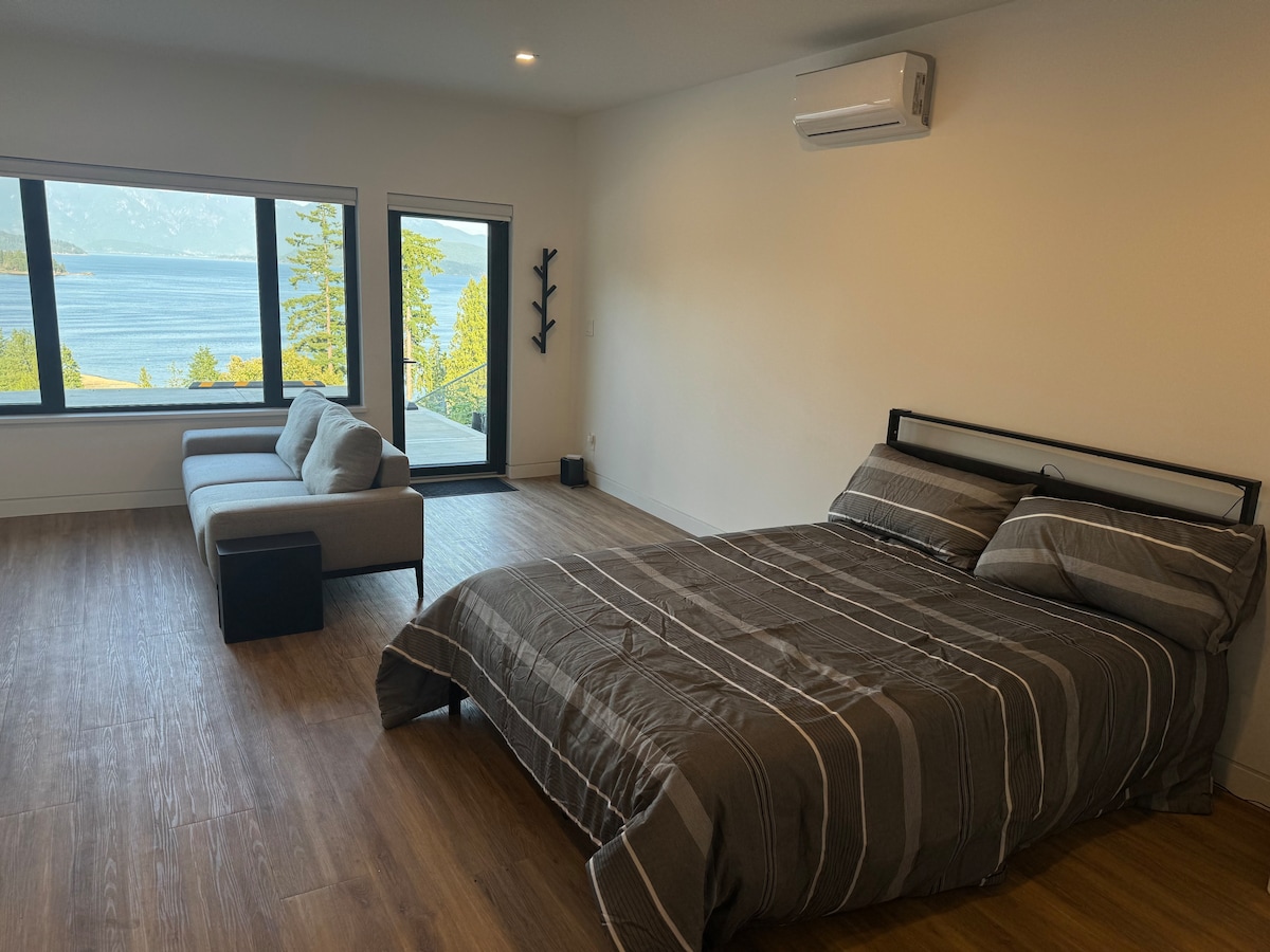Welcome to Bench 170. You will enjoy the very private entire upper floor and use of the yard as guest space. This house is a West Coast Modern built in 2012. A delight for architect enthusiasts and art lovers alike as it was a venue for the Sunshine Coast Art Crawl for several years. There is a public beach access directly adjacent to the property that takes you down to a cobble stone beach looking west to the Georgia Strait. Please refer to Policy and Rules for pets.