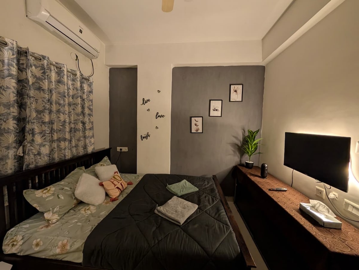 💛 A Home Meant For Us A warm, sun-kissed nook where comfort meets charm. A little haven that feels like a gentle hug 🌞🌙 📍 Tucked in Kondapur — Steps away from Sarath City Mall, Shilparamam & Botanical Garden. Just 10 mins to HITEC City & major IT hubs 💻 Perfect for couples, creators & cozy WFH days ☕ Unwind, breathe easy, And let the glow of A Home Meant For Us stay with you. 🍋