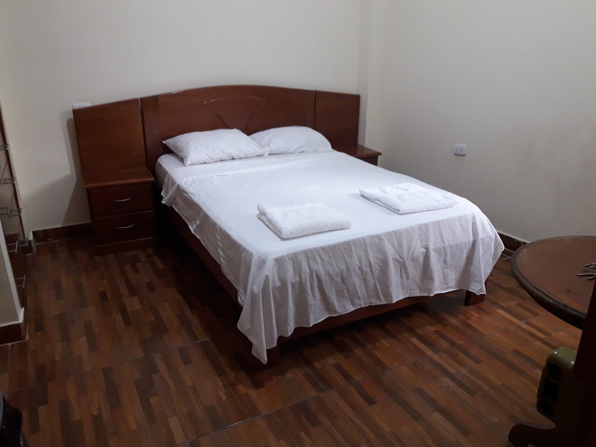 Mini departamento independiente en un segundo piso, silencioso, tranquilo, limpio, cómodo y seguro, piso cerámico, tiene todo lo necesario para vivir, ideal para personas que vienen a la Amazonia por vacaciones, c/ Wifi. Ambientes acondicionados con mallas protectoras contra mosquitos; cuenta con sala, comedor, cocina, lavandería; habitación amplia c/ cama matrimonial, aire acondicionado. SS.HH. exclusivo dentro del Dpto. solo para el huesped(es).