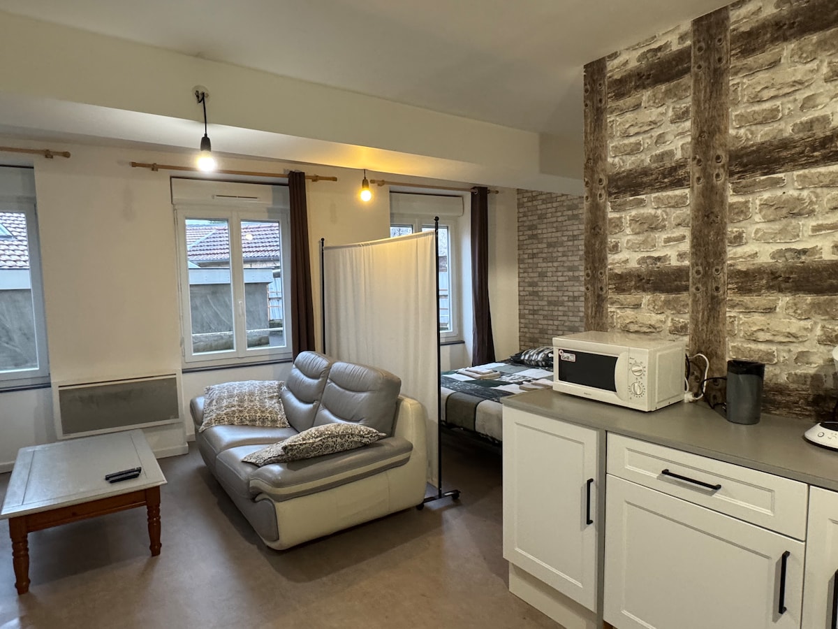 Bonjour Petit studio composé d'une salle de bain avec douche, WC et petit lavabo. Cuisine composée d un mini four, plaque de cuisson, frigo, micro-ondes et cafetière. Canapé lit convertible. Télévision. Superficie 30 m2. Petit endroit paisible pour passage étape, idéal pour personne seule ou couple, belle balade à effectuer dans la nature (très proche d'un site naturel protégé). Non fumeur. 1 seul Petit Chien accepté , gros gabarit refusé. Parking privé dim 7mx4m (environ)