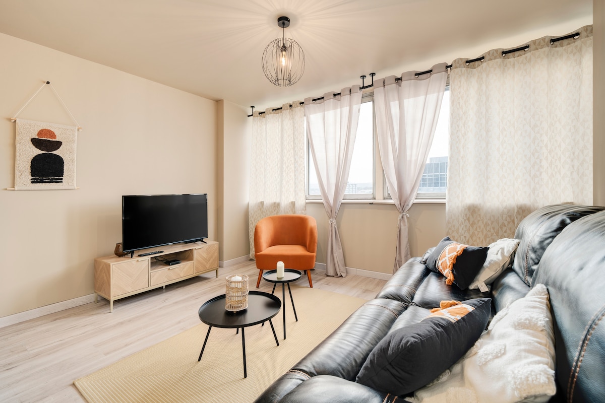 En logement entier - Appartement 5 pièces de 110m² et ses 50m2 de balcons filants aménagés et vue panoramique sur la ville, entièrement rénové est idéalement situé centre gare, au 13eme et dernier étage d’une résidence. luminosité, propreté, literie confortable et déco apaisante et moderne. Emplacement central, tout est à proximité : Place Stanislas, commerces, transports, Centre des Congrès. A bientôt ! (note : absence de commentaire pendant longue période suite location longue durée).