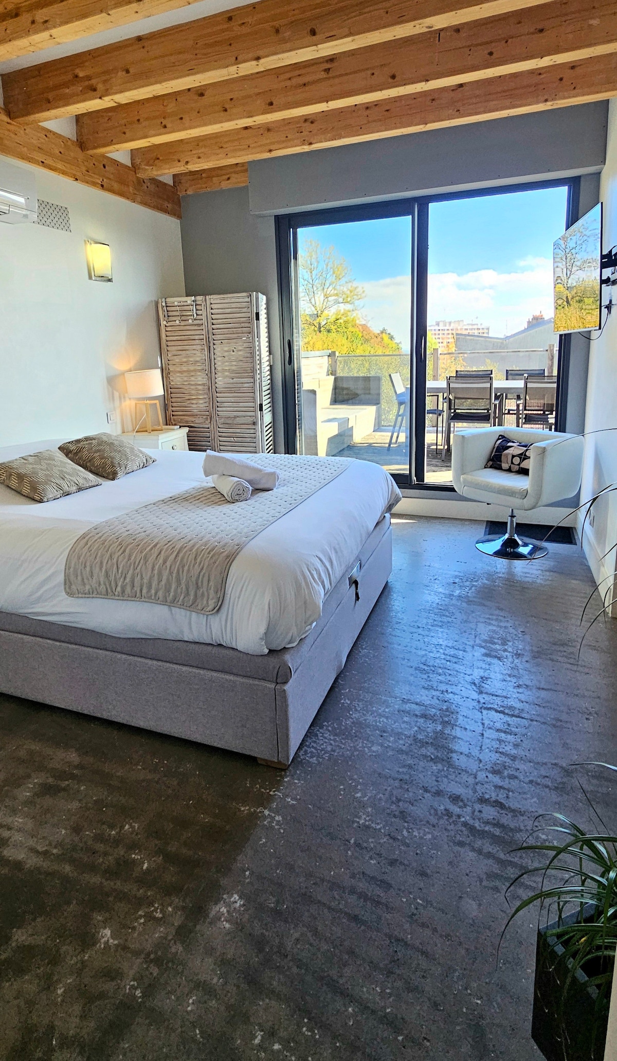 Ce paisible duplex de 120 m2 avec terrasse de 18 m2 offre une vue imprenable sur Nancy. Il sera le lieu idéal aussi bien pour un séjour détente pour toute la famille, que pour un séjour professionnel. Cet appartement entièrement climatisé peut accueillir avec ses 3 chambres équipées de TV jusqu'à 6 personnes. Proche de toutes commodités, il se situe à 2km du centre-ville de Nancy et se trouve à 50 m d’un arrêt de bus.